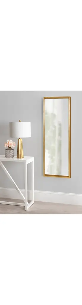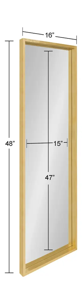 Add a functional accent to your home and create a vibrant focal point with the Travis panel mirror. Designed by Kate and Laurel, this panel mirror features a bold, transitional look that's perfect for any room. This Travis mirror has an elongated rectangular shape and a striking gold finish, making it a fantastic addition for any closet, bedroom, entryway, living room, or dining room. The Travis's overall dimensions are 16 inches wide by 1.5 inches deep by 48 inches tall, making it a lovely dressing mirror for a last-minute outfit and makeup checks. You could also hang it horizontally for a display over your mantle, console, or in your entryway. It's also fantastic to hang over your bed to give the master bedroom an open and inviting look. Adding a mirror to a room in your home enhances the space by adding a decorative statement and spreading light, making your space appear larger. The D-ring hangers attached to the frame's back allow the Travis mirror to hang vertically and horizontally, providing a versatile wall accent that can fit in many spaces.BOLD DESIGN: With a sophisticated and elongated rectangle shape, this modern wall mirror is the perfect solution for adding a transitional piece of decor for any room in any seasonELEGANT FINISH: The Travis panel mirror has a striking gold finish that is perfect for the glamorous decorator, bursting off the wall and adding sophistication to any spacePERFECT SIZE: The overall dimensions of the Travis rectangular mirror are 16 inches wide by 1.5 inches deep by 48 inches wide, making it a fantastic functional dressing mirror for last-minute outfit checksMULTIFUNCTIONAL: Adding a mirror to your home spreads light and dimension throughout the room, so while the Travis brings decorative style to the space, it also enhances its depth*EASY TO HANG: D-ring hangers are attached to the back of the Travis mirror's frame for easy installation on the wall