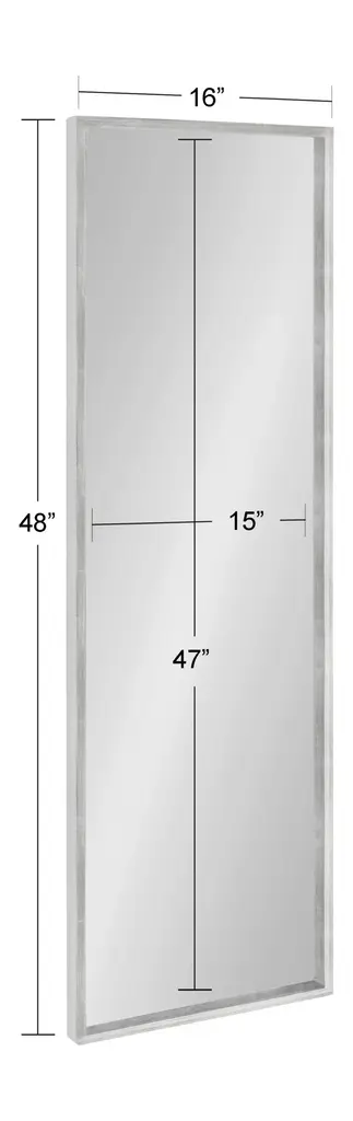Add a functional accent to your home and create a vibrant focal point with the Travis panel mirror. Designed by Kate and Laurel, this panel mirror features a bold, transitional look that's perfect for any room. This Travis mirror has an elongated rectangular shape and a striking silver finish, making it a fantastic addition for any closet, bedroom, entryway, living room, or dining room. The Travis's overall dimensions are 16 inches wide by 1.5 inches deep by 48 inches tall, making it a lovely dressing mirror for a last-minute outfit and makeup checks. You could also hang it horizontally for a display over your mantle, console, or in your entryway. It's also fantastic to hang over your bed to give the master bedroom an open and inviting look. Adding a mirror to a room in your home enhances the space by adding a decorative statement and spreading light, making your space appear larger. The D-ring hangers attached to the frame's back allow the Travis mirror to hang both vertically and horizontally, providing a versatile wall accent that can fit in many spaces.BOLD DESIGN: With a lovely silver finish and a sophisticated elongated rectangle shape, this modern wall mirror is the perfect solution for adding a transitional piece of decor for any room in any seasonQUALITY MATERIAL: The frame of the Travis mirror was made from a robust wooden material to provide a resilient and sleek looking accent piece for any roomPERFECT SIZE: The overall dimensions of the Travis rectangular mirror are 16 inches wide by 1.5 inches deep by 48 inches wide, making a comparable solution for wall art that stands out on the wallMULTIFUNCTIONAL: Adding a mirror to your home spreads light and dimension throughout the room, so while the Travis brings decorative style to the space, it also enhances its depthEASY TO HANG: D-ring hangers are attached to the back of the Travis mirror's frame for easy installation on the wall
