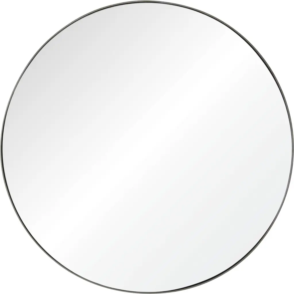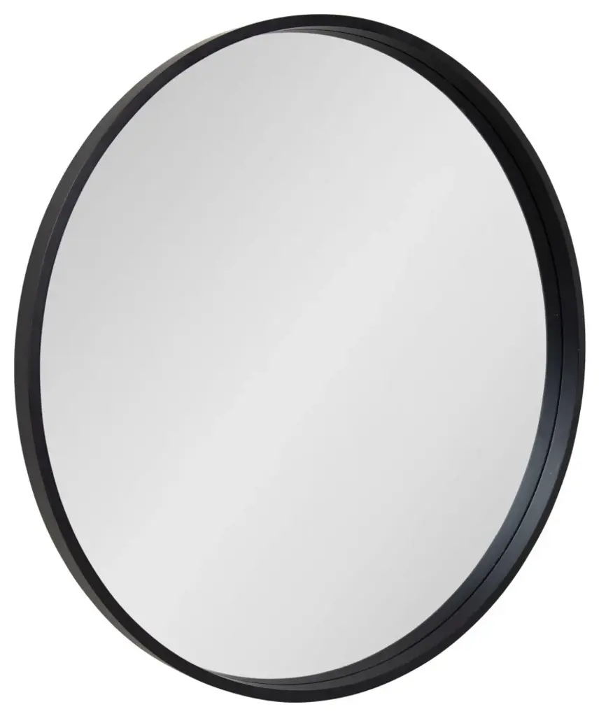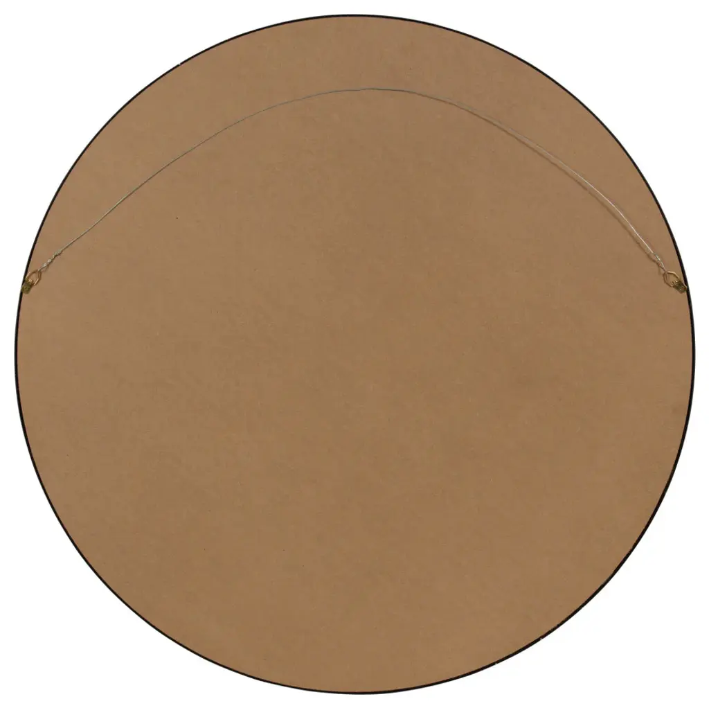 This decorative round wood mirror is a beautifully unique accent piece for your home decor. Hang this mirror above a fireplace, over a sofa, or above your bedroom headboard for a stunning wall accent. This mirror is also stunning as a vanity mirror. The reflective mirror surface has a 31-inch diameter. The outer dimensions measure 32 inches diameter and 1.5 inch depth from the wall. The mirror weighs 8 pounds. Two metal D-ring hangers with wire, are attached to the back of the frame for easy wall display. This gorgeous wood contemporary modern wall mirror piece will be the perfect fit in your existing decor theme in any room of the home!• MODERN ROUND SHAPE: Add a soft, contemporary look in your home with a circular wooden frame wall mirror with a sleek black finish• TRANSITIONAL STYLE: A practical piece, this mirror will work in your bedroom, living room, bathroom or any small to medium space you need to add a touch of style• DRAMATIC OVERSIZED ACCENT: Create a dramatic focal point in any room with the large, 32 inch-high and 32-inch wide frame • DURABLE MATERIAL: Mirror frame is constructed of resilient manufactured wood with metal d-ring hangers with wire are attached for easy wall display• DECORATIVE YET FUNCTIONAL: A well placed mirror will enhance and lighten a space and is easily featured above a vanity or desk, fireplace, or sofa for extra brightness with a charming touch