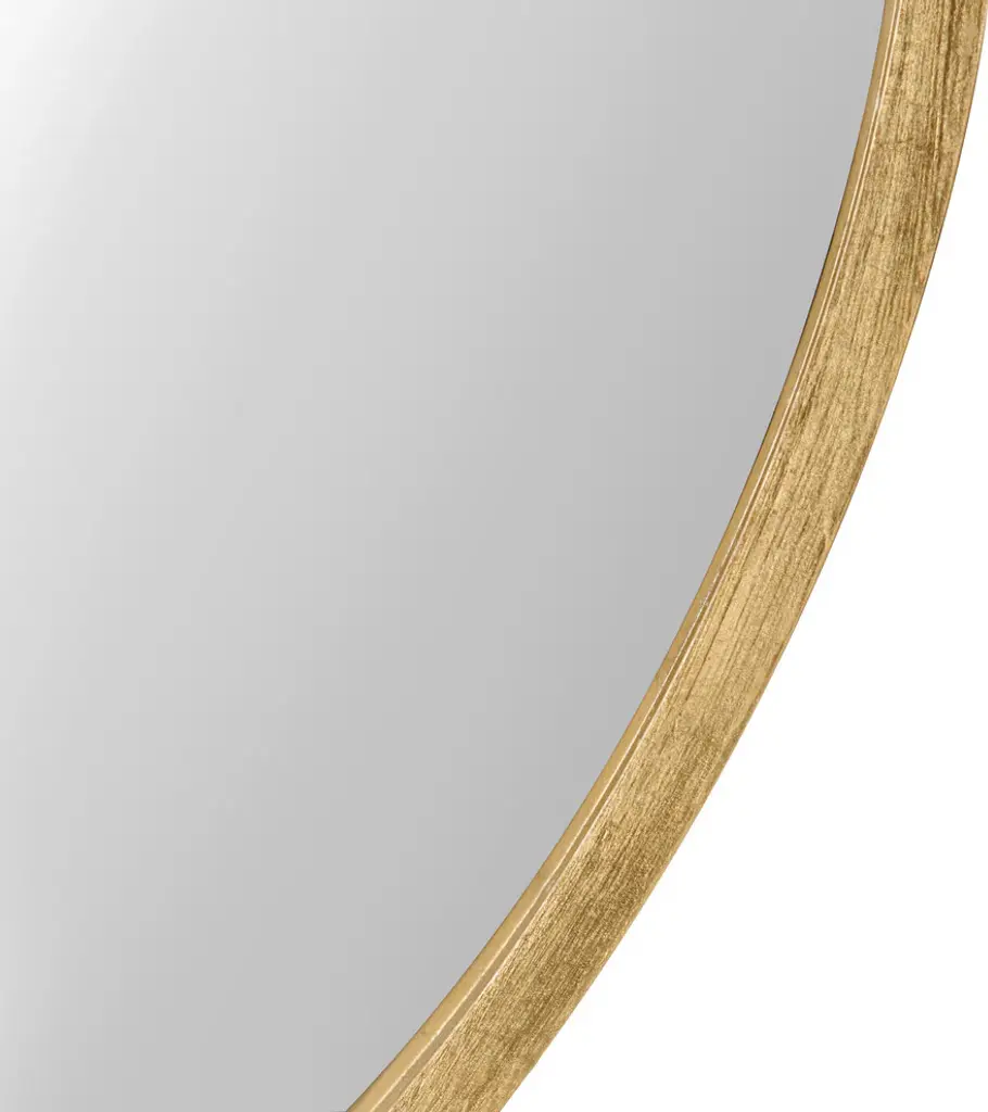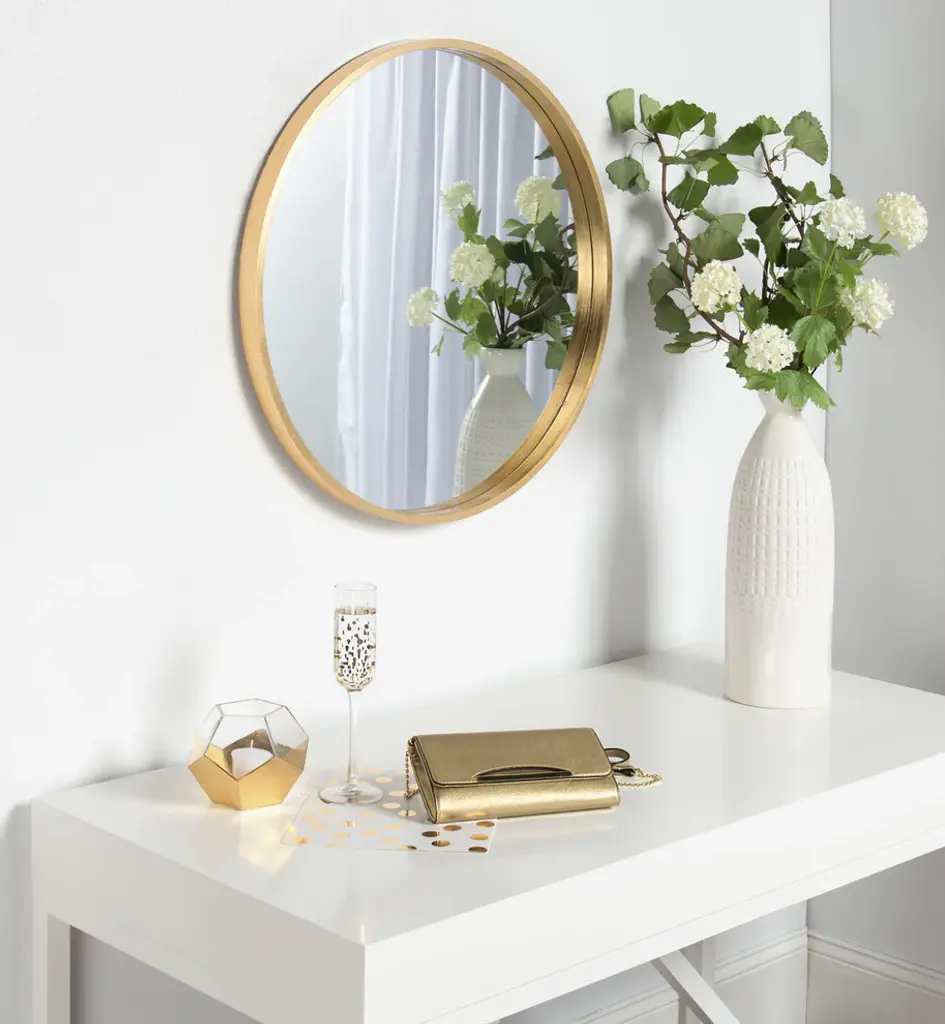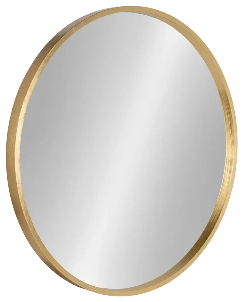 Travis Round Wood Accent Wall Mirror, Gold 25.6" Diameter