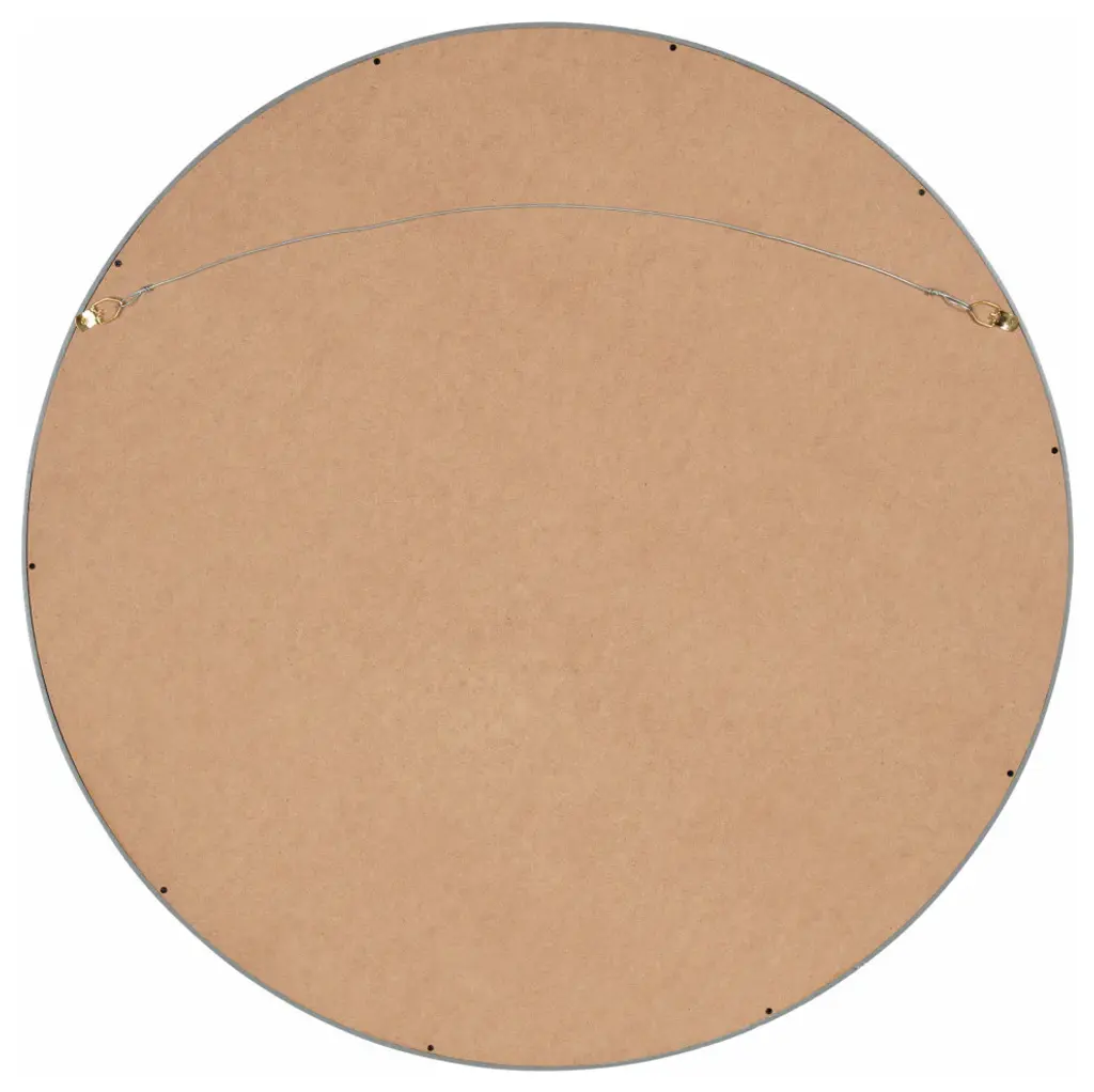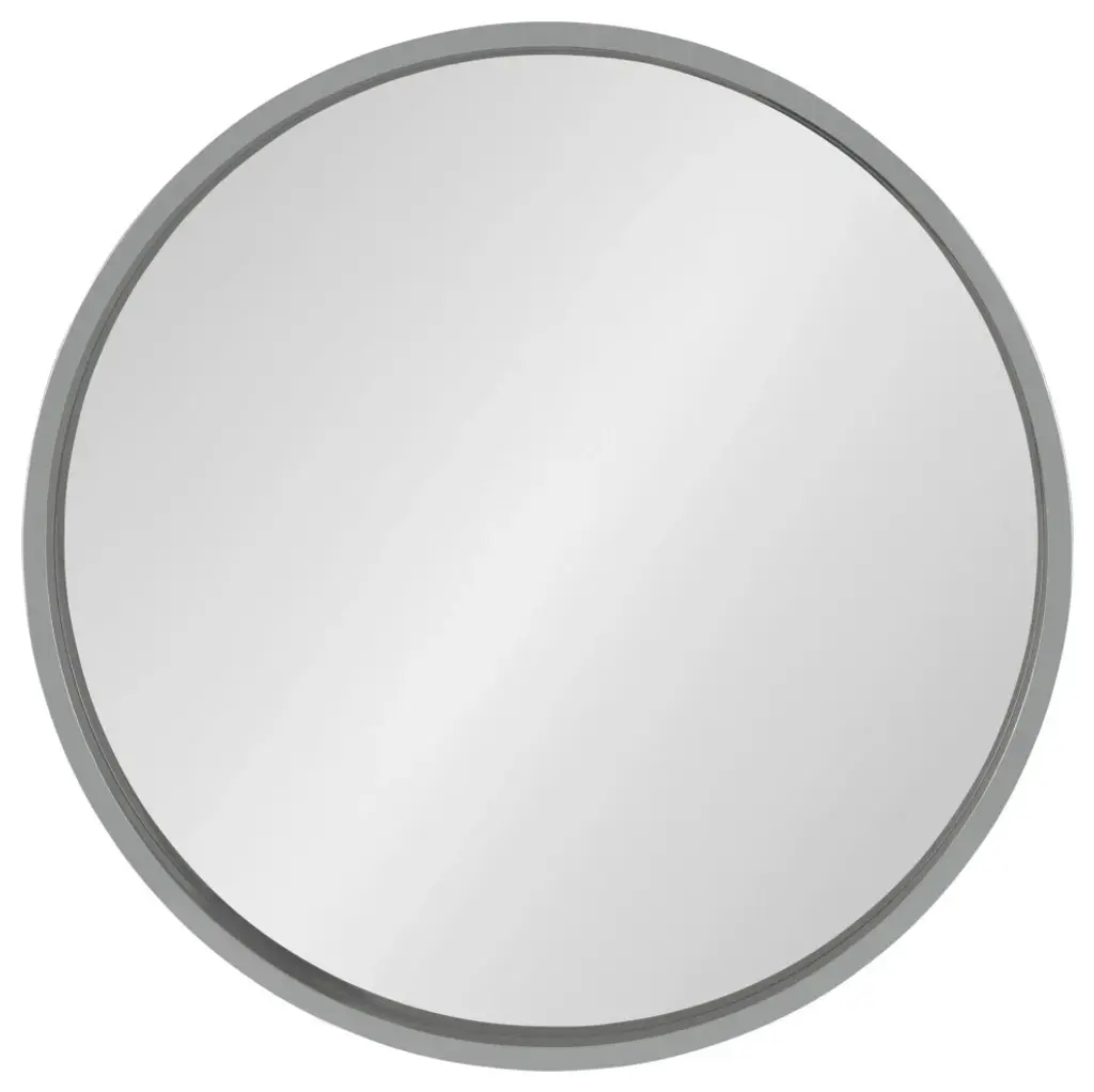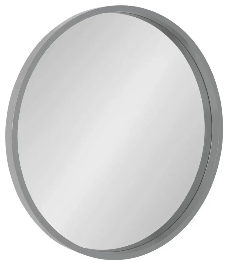 This decorative round wood mirror is a beautifully unique accent piece for your home decor. Hang this mirror above a fireplace, over a sofa, or above your bedroom headboard for a stunning wall accent. This mirror is also stunning as a vanity mirror. The reflective mirror surface has a 24.5 inch diameter. The outer dimensions measure 25.6 inches diameter and 1.25 inch depth from the wall. The mirror weighs 8 pounds. Two metal d-ring hangers are attached to the back of the frame for easy wall display. This gorgeous wood contemporary modern wall mirror piece will be the perfect fit in your existing decor theme in any room of the home!• MODERN GEOMETRIC SHAPE: A circular wooden framed wall mirror with a minimal gray finish adds a soft contemporary look in your home• TRANSITIONAL STYLE: A practical piece, this mirror will work in your bedroom, living room, bathroom or any small to medium space you need to add a touch of style• PERFECT SIZE: Display dimensions are 25.6 inches high by 25.6 inches wide by 1.25 inches deep• DURABLE MATERIAL: Mirror frame is constructed of a resilient manufactured wood with metal d-ring hangers attached for easy wall display• DECORATIVE YET FUNCTIONAL: A well placed mirror will enhance and lighten a space and is easily featured above a vanity or desk, fireplace, or sofa for extra brightness with a charming touch