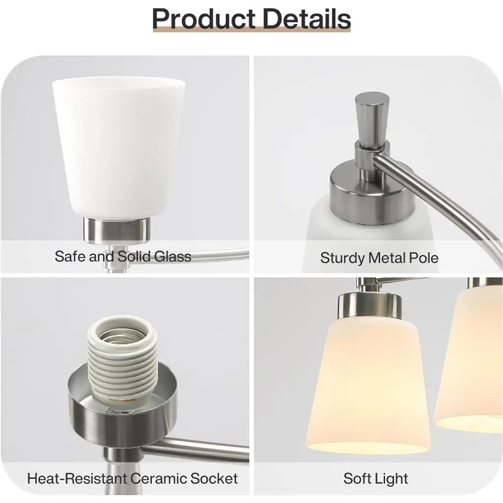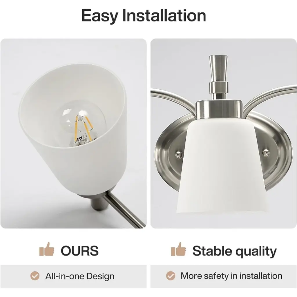 3 Light Brushed Nickel Bathroom Light Fixtures are made of electroplated sand nickel treated all iron lamp frames, paired with white jade glass, so there is no need to worry about rusting. High quality makes your space look more upscale. The bathroom vanity light perfect to complement American home decoration, suitable for any room of your home, such as bathroom, living room, hallway, entryway, etc.