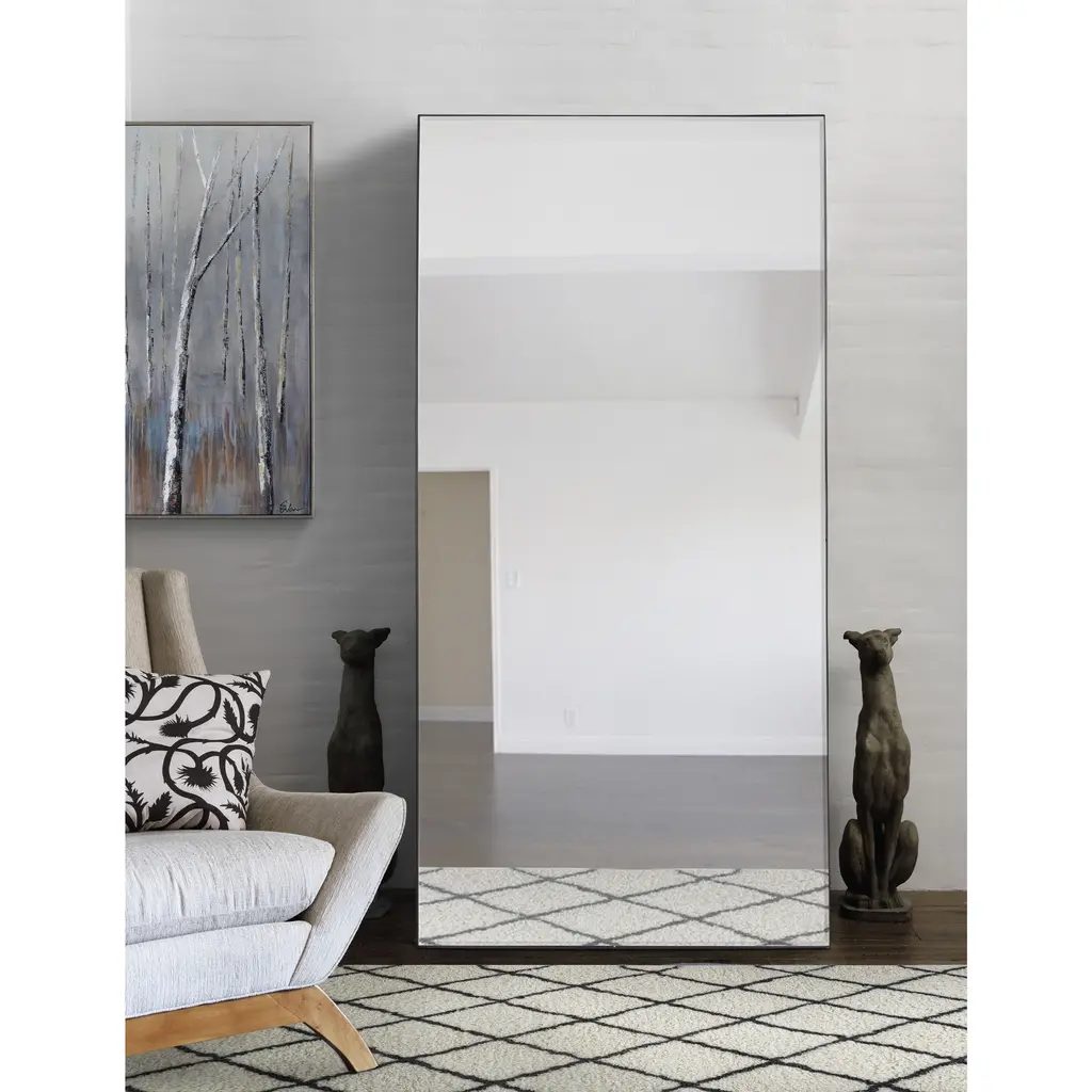The understated design of this full-length wall mirror exudes classic cool. The thin profile of the iron frame features a black finish that fits beautifully on feature walls in formal and casual rooms. The streamlined style of the rectangular mirror is an instant standout among modern fixtures and furnishings.