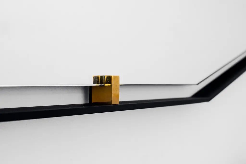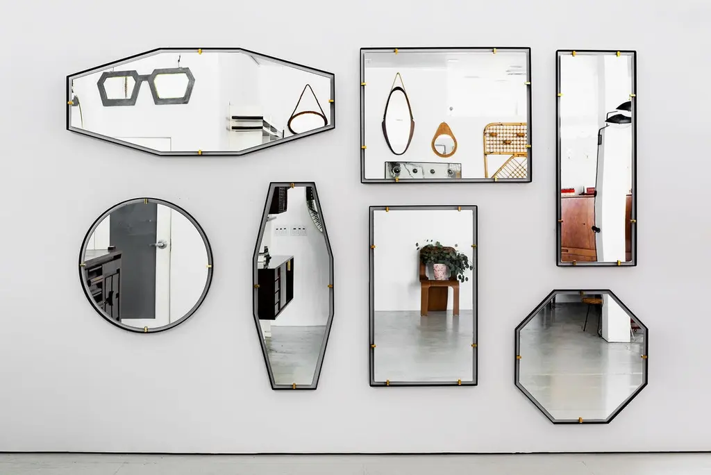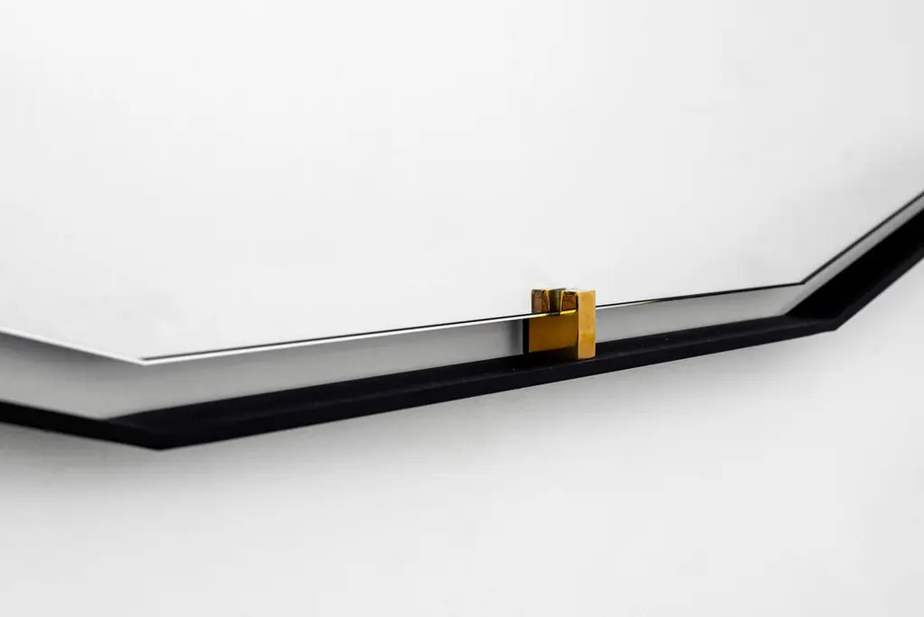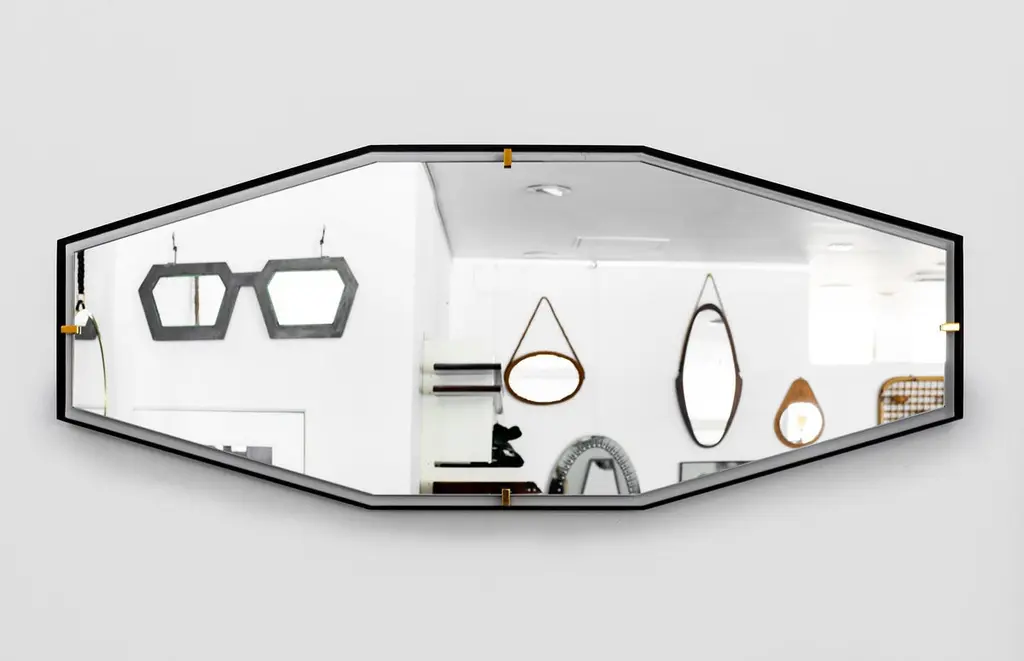 Outlined by a thin steel frame and held in place with solid brass clasps the Trousdale mirror is beautiful in any room. Can be hung horizontal or vertical Custom sizes and finishes available. Made in Los Angeles This is custom extra large size of 60" x 24".