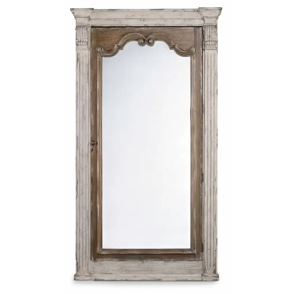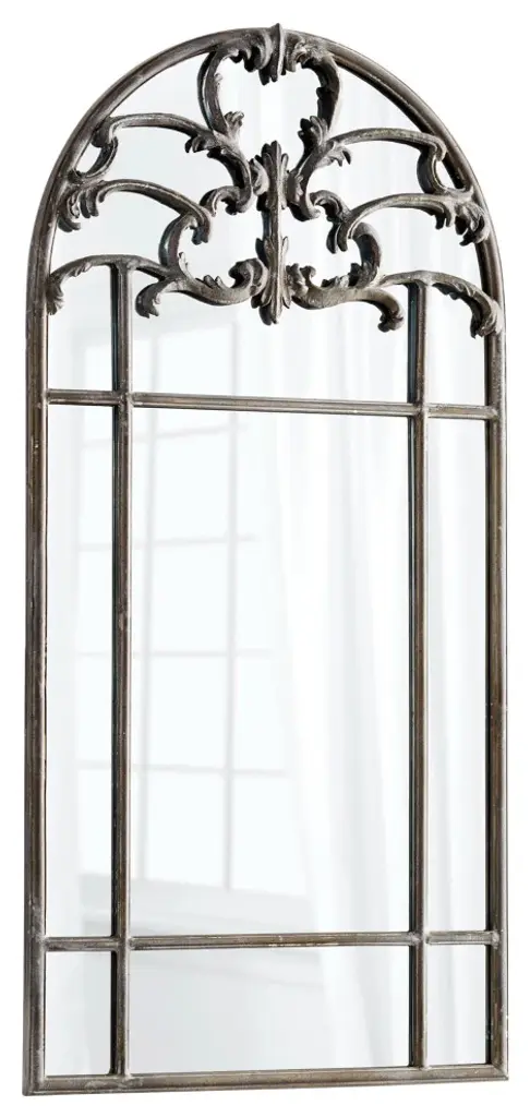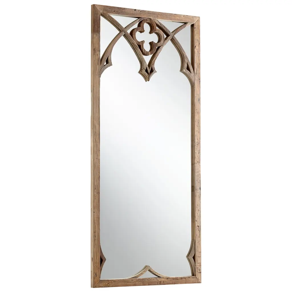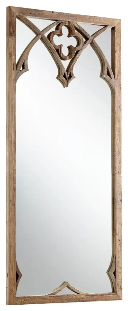 Classic English Tudor style is exquisitely embodied in this wood mirror. Black Forest Grove finish accentuates the antique ornamental flourishes. Dimensions: H 86.5 x W 39.5 x Ext 1.75 (Inches) Weight: 103.0 lbs Materials: Wood and Mirrored Glass Finish or Color: Black Forest Grove SKU: 6557 Manufacturer: Cyan Design F