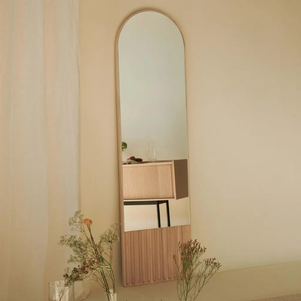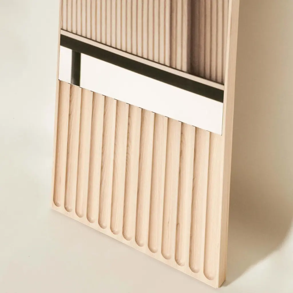 Tutto Sesto mirrors are part of the 2023 collection of contemporary solid wood furniture. Born from the dialogue between Dale Italia and Cono Studio, the range is defined by essential aesthetics, in tune with current trends without losing touch with the craftsmanship values of our Made in Italy. The mirrors stand out for the contrast between the lightness of the frame and the heaviness of the base. The milled pattern creates a decorative motif through plays of light and shadow.