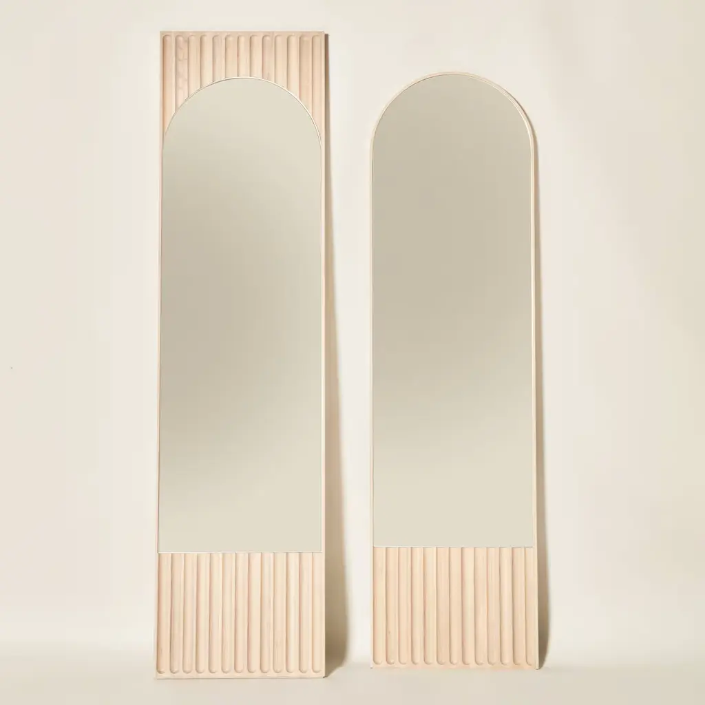 Tutto Sesto mirrors are part of the 2023 collection of contemporary solid wood furniture. Born from the dialogue between Dale Italia and Cono Studio, the range is defined by essential aesthetics, in tune with current trends without losing touch with the craftsmanship values of our Made in Italy. The mirrors stand out for the contrast between the lightness of the frame and the heaviness of the base. The milled pattern creates a decorative motif through plays of light and shadow.