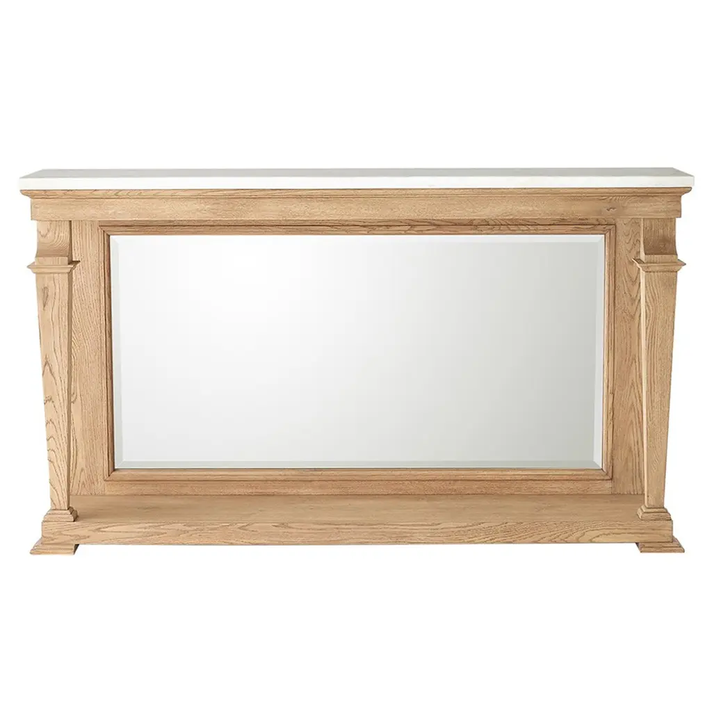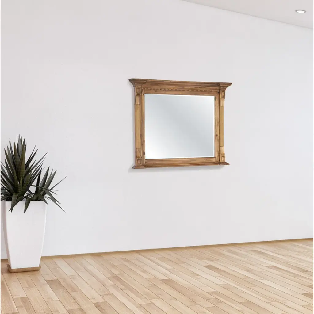 The mirror is the perfect meeting of modern and traditional styles. Hand-carved accenting filigrees showcase superior craftsmanship while clean lines make this mirror a piece that will compliment any room.
