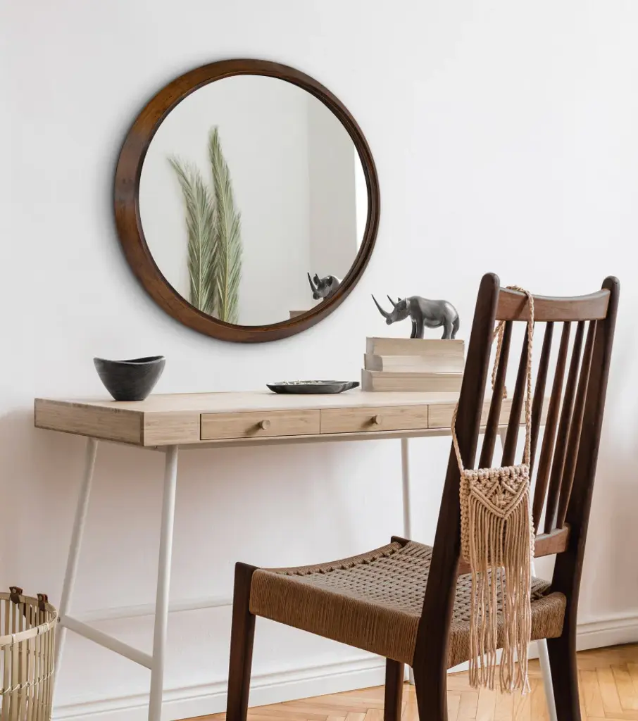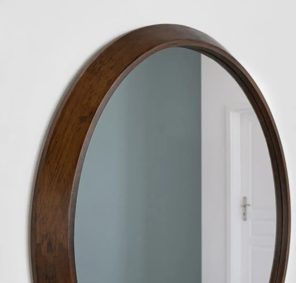 Uldrich Wood Framed Mirror, Walnut Brown, 24 Diameter