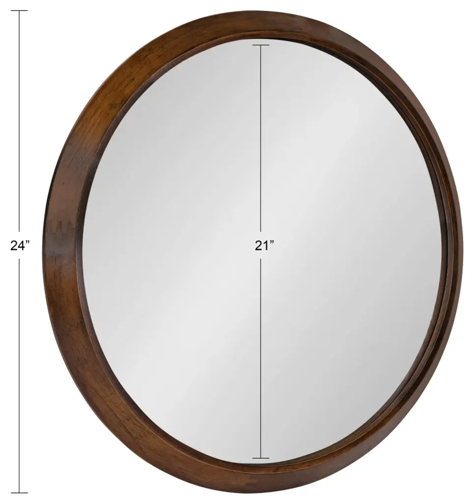 The Uldrich mirror brings a timeless and trendy style to your wall. This wall mirror has a lovely round shape, creating a sense of geometry and dimension to your home. The frame has a thick, robust profile, making it a dimensional statement that leaps off your wall. Its walnut finish has a warm vibe that is reminiscent of vintage farmhouses or cozy cottages. This sophisticated wall mirror''s overall dimensions are 24 inches wide by 1.5 inches deep by 24 inches tall, making it a commanding statement that draws focus to your wall display. The Uldrich mirror is fantastic as a decorative focal point on your wall, enhancing the room''s vibrancy by spreading light sources and illuminating the darker corners of your space. This also makes the room feel bigger, so the Uldrich is perfect for your small spaces! If you''re looking to revamp your bathroom, the Uldrich also makes for a fantastic bathroom mirror over a modern farmhouse vanity. Hang the mirror easily with the metal D-ring hangers that are securely attached to the frame''s back. • MODERN DESIGN: The Uldrich has a thick frame in a trendy round shape, giving it a timeless design that brings vibrancy and sophistication to your wall • COZY FINISH: The warm walnut brown finish incorporates a sense of coziness in your home while eliciting imagery of farmhouse design • AMPLE SIZE: The overall dimensions of this mirror are 24 inches wide by 1.5 inches deep by 24 inches tall, making it a dimensional and commanding accent piece• VERSATILE: Use the Uldrich mirror to draw the eye and bring a sense of coziness to your living room or use it as a functional bathroom mirror over your vanity • EASY TO HANG: The D-ring hangers attached to the back of the mirror allow a hassle-free installation