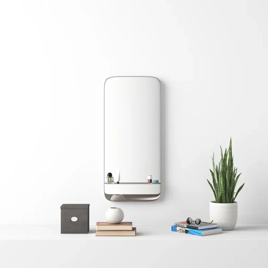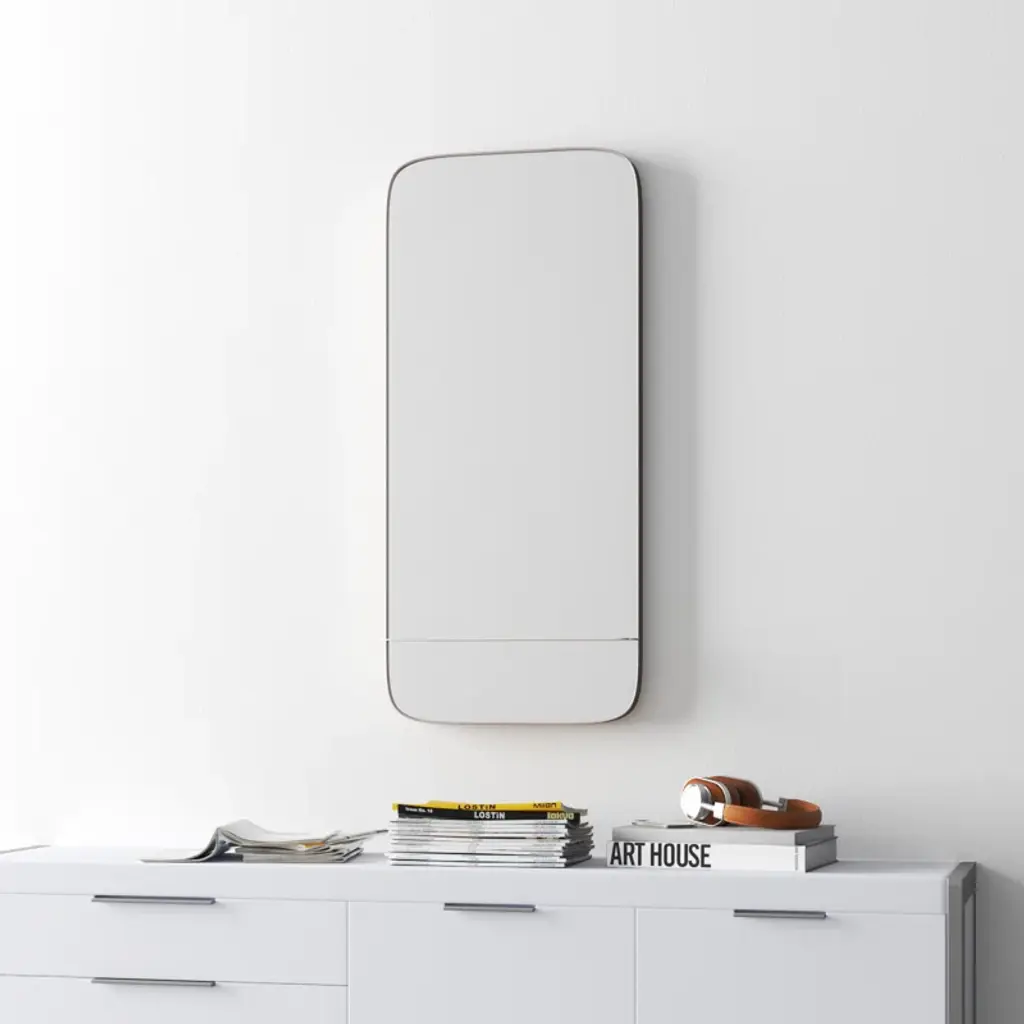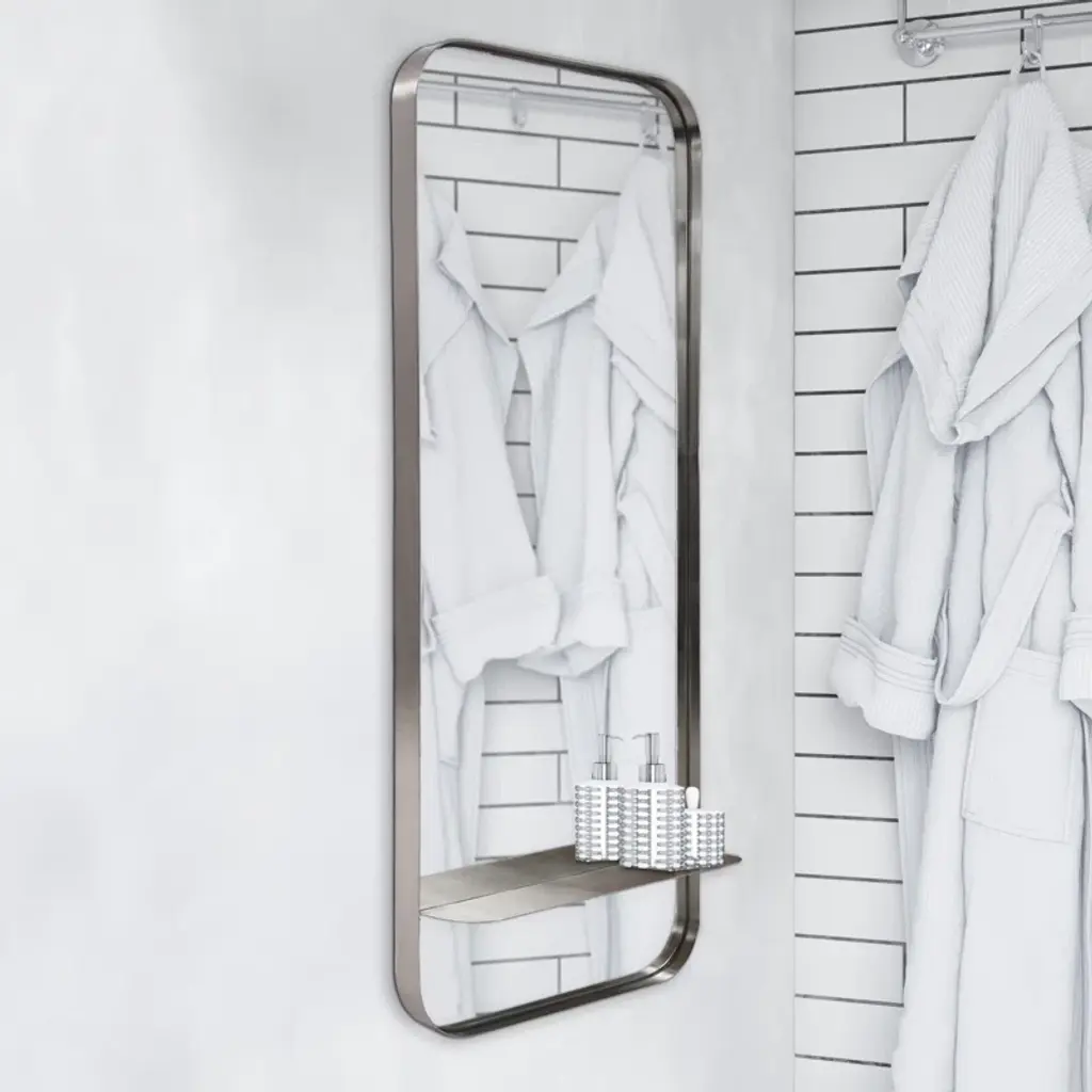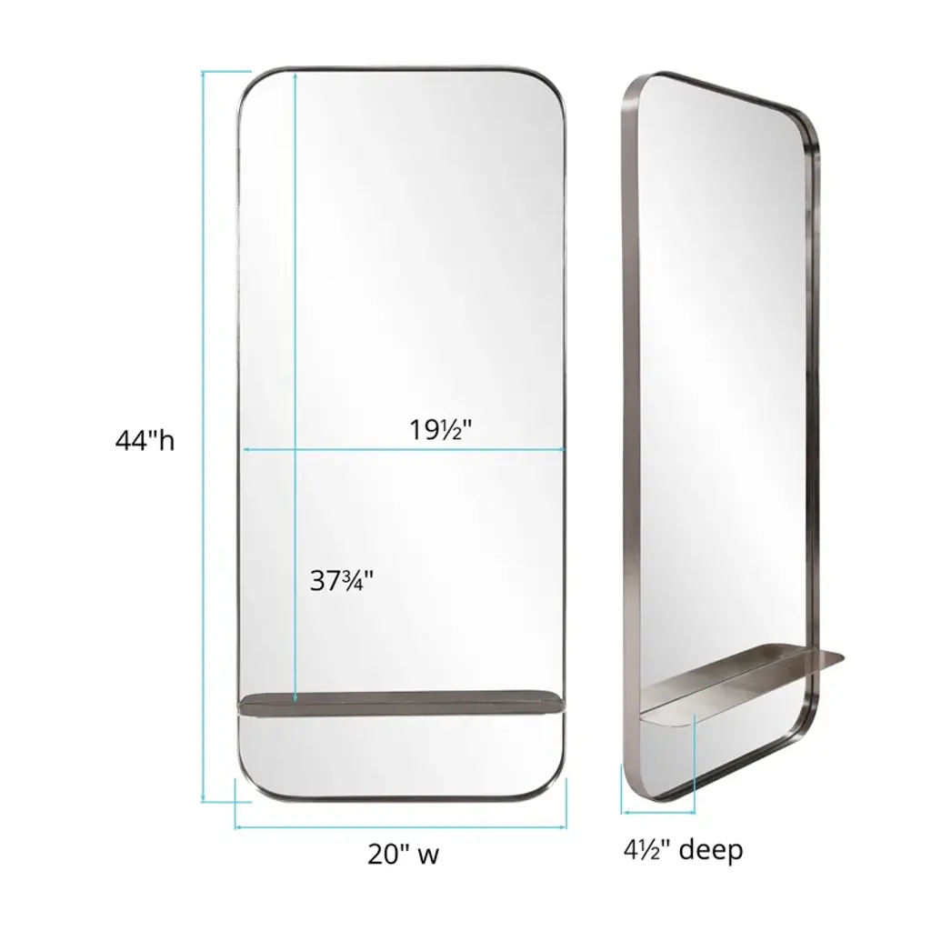 Space is always a premium in any room or bathroom. The Ulis Mirror finds the perfect balance of sleek design and functionality. The simple rectangular frame of brushed silver stainless steel with a built in shelf offers a unique look to any space, large or small. D-rings are affixed to the back of the mirror so it is ready to hang right out of the box.