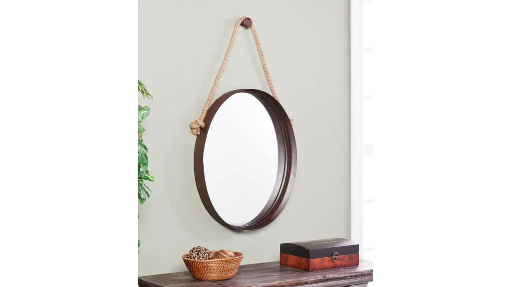 Simple beauty and clever design make the Ulverston Mirror. Welcome a fresh take on the captain's mirror with this oval design. The rust finish frame and knob contrast beautifully with the bright mirror surface and hanging rope. The knob mounts separately to allow adjustments of the rope swag. Add this stunning mirror to the entryway, family room, bathroom, or bedroom - any wall in need of a special touch.