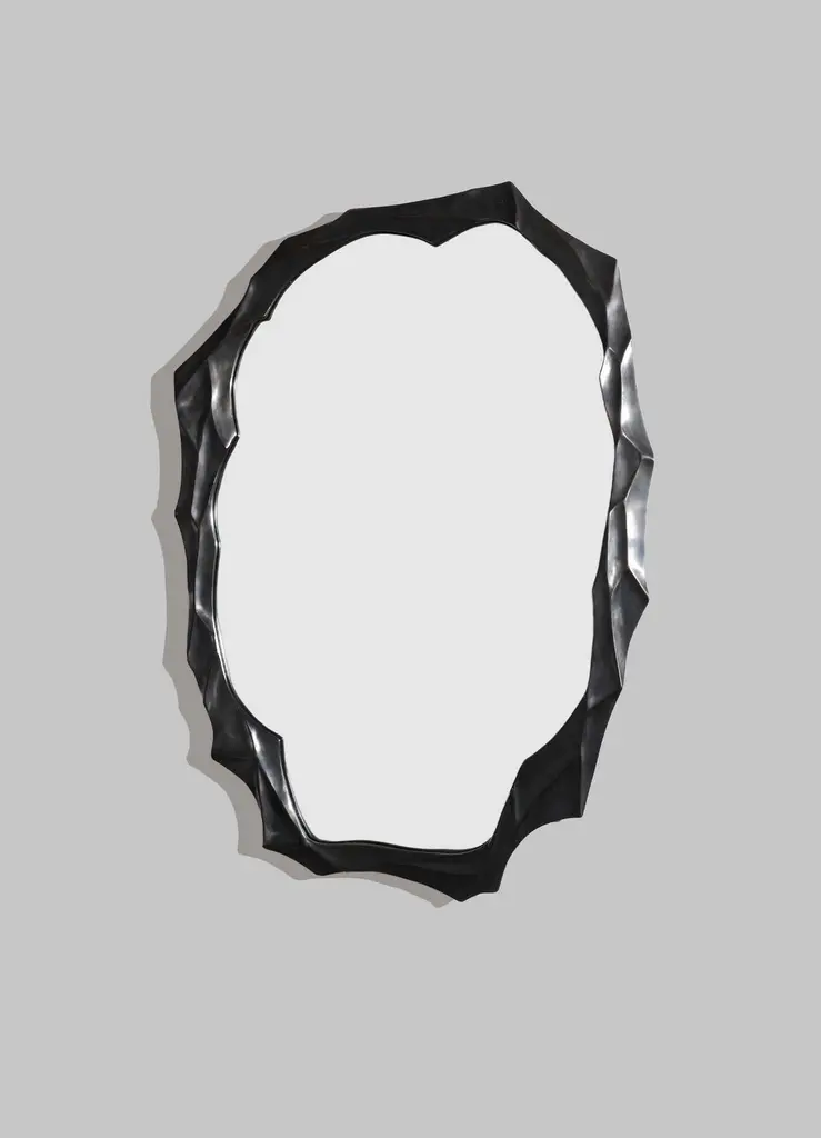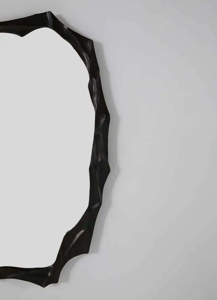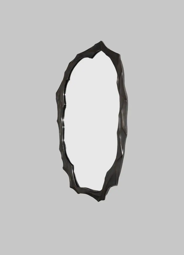 Under The Banyan Mirror Tall in Brass, Viya by Vikram GoyalEchoing ancient whispers of worship, each object captures the essence of the Banyan tree, believed to hold the divine power to fulfil wishes. Crafted with reverence, these pieces pay homage to the tree's sacred names—Vat Vriksha, Bargad, and Bahupata, the latter signifying its multitude of roots connecting earth and heavens. Beyond brass and form, these objects reflect the intricate dance of aerial roots, encapsulating the symbolism of longevity, mortality, and enlightenment.Mirror in brass. Handmade in India.Product DetailsMaterial: BrassSize: 36"H x 25"W x 1.5"D 91.4 H x 63.5 W x 3.8 D cmWeight: 19 kg 41.8 lbsNumber of Pieces: 1 MirrorSKU: VMI752This product has been handcrafted by local artisans. As such, slight variations are a testament to the unique character of a piece made by hand.