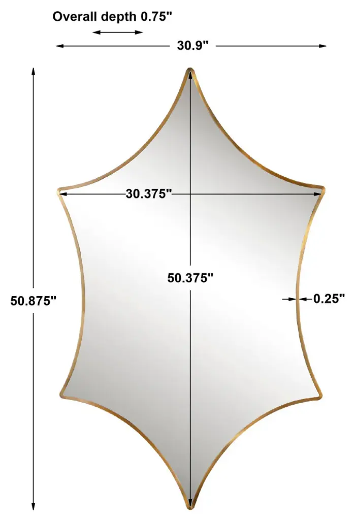 Perfect For An Entryway Or A Stunning Over The Sofa Display, This Transitional Mirror Features A Uniquely Shaped Stainless Steel Frame With Gracefully Curved Points Finished In Classic Brushed Gold. May Be Hung Horizontal Or Vertical. Uttermost''s Mirrors Combine Premium Quality Materials With Unique High-style Design. With The Advanced Product Engineering And Packaging Reinforcement, Uttermost Maintains Some Of The Lowest Damage Rates In The Industry. Each Product Is Designed, Manufactured And Packaged With Shipping In Mind. DimensionsDepth: 0. 75 in. Width: 30. 9 in. Height: 50. 875 in.