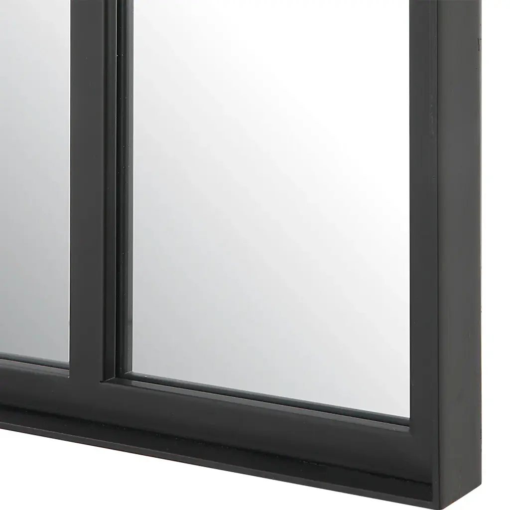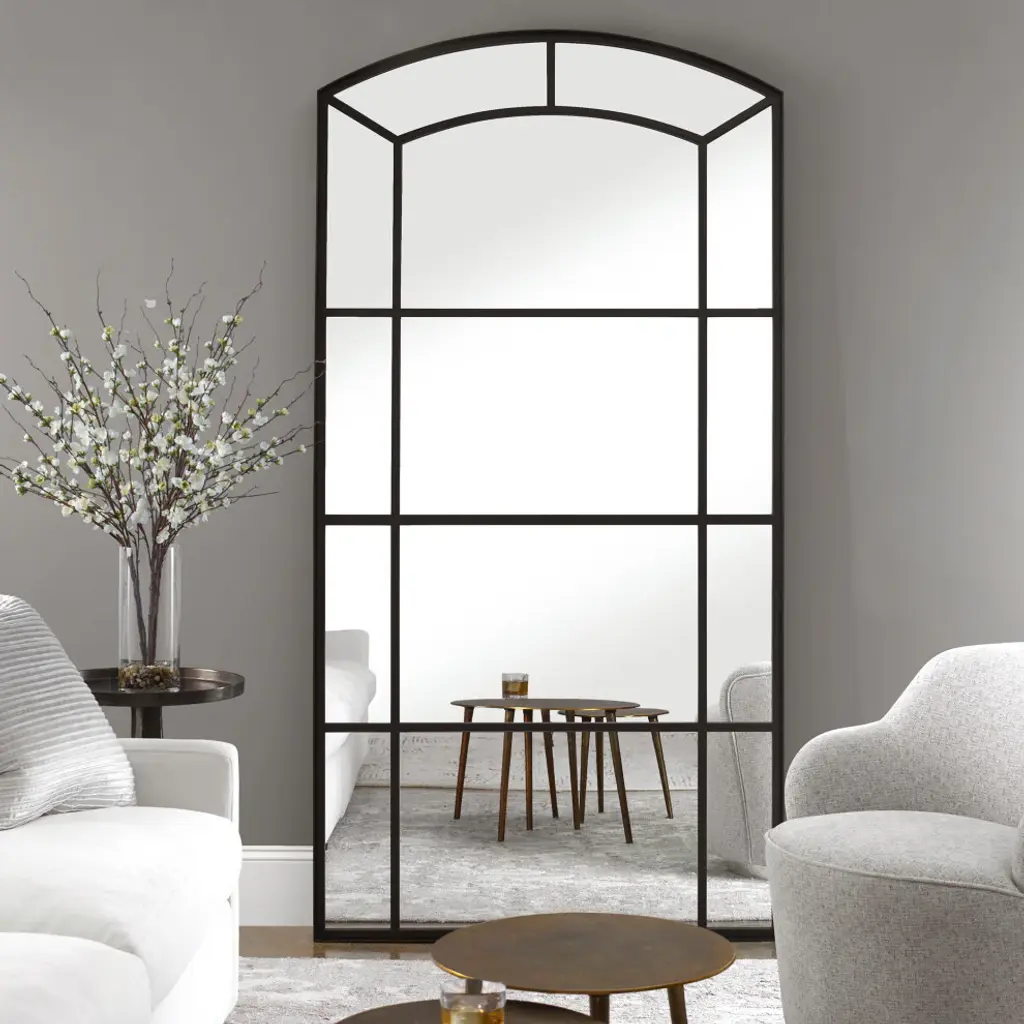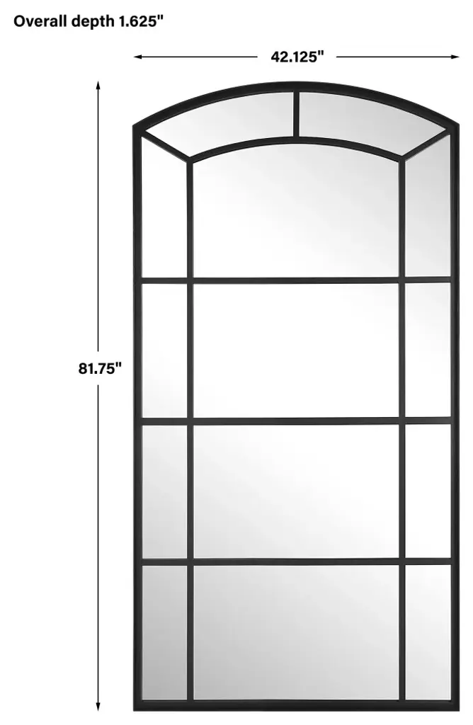 This Oversized Arch Mirror Features A Substantial Solid Iron Frame Finished In A Rich Satin Black, With A Deep Channeled Outer Edge.