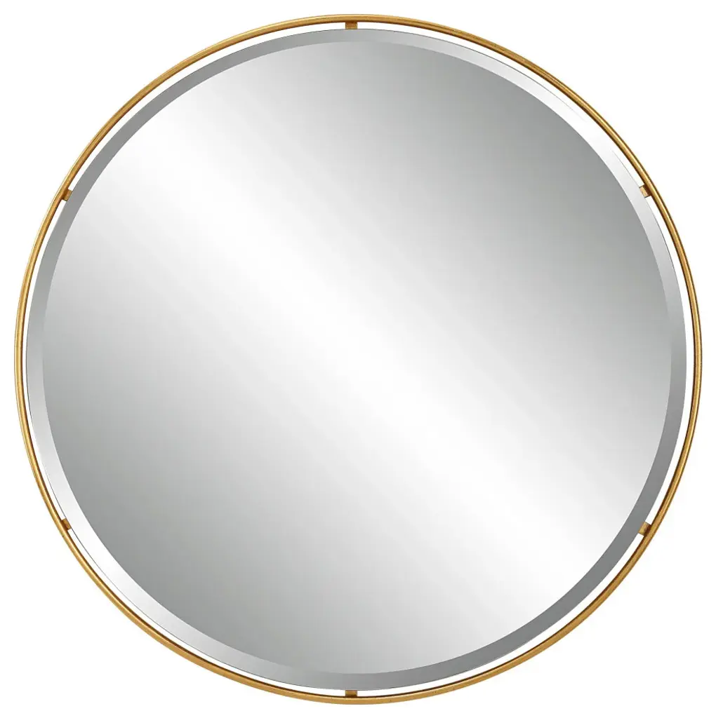 This Mirror Frame Is Forged From Rounded Metal And Finished In A Heavily Antiqued Gold Leaf. Featuring A Floating Beveled Mirror. Uttermost''s Mirrors Combine Premium Quality Materials With Unique High-style Design. With The Advanced Product Engineering And Packaging Reinforcement, Uttermost Maintains Some Of The Lowest Damage Rates In The Industry. Each Product Is Designed, Manufactured And Packaged With Shipping In Mind. DimensionsDepth: 0. 75 in. Width: 42 in. Height: 42 in.