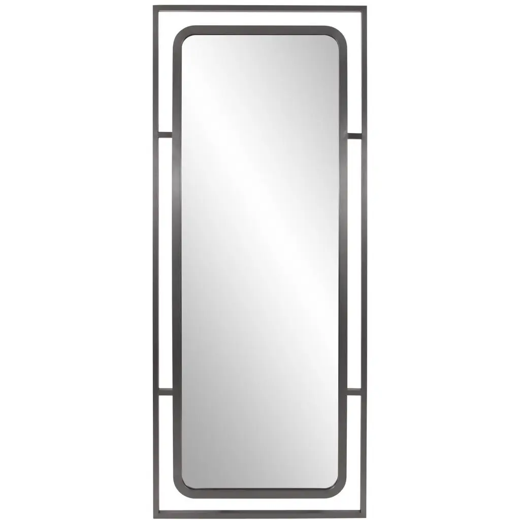 This Iron Frame Features A 3-dimensional Design With An Outer Frame Finished In Distressed Rustic Bronze, Accented By A Lightly Antiqued Gold Leaf Inner Frame. This Mirror Is Complemented By A 1 1/4" Bevel And May Be Hung Horizontal Or Vertical.