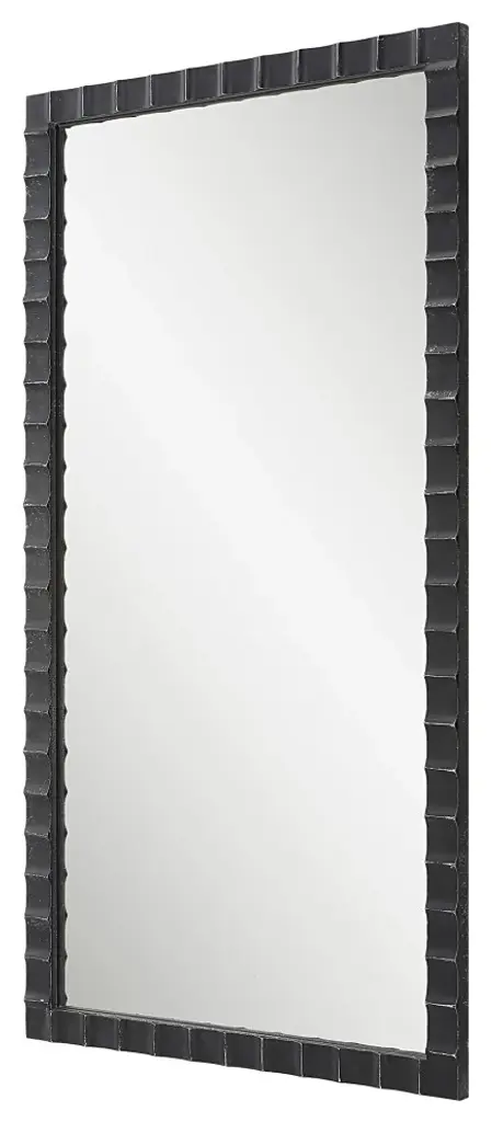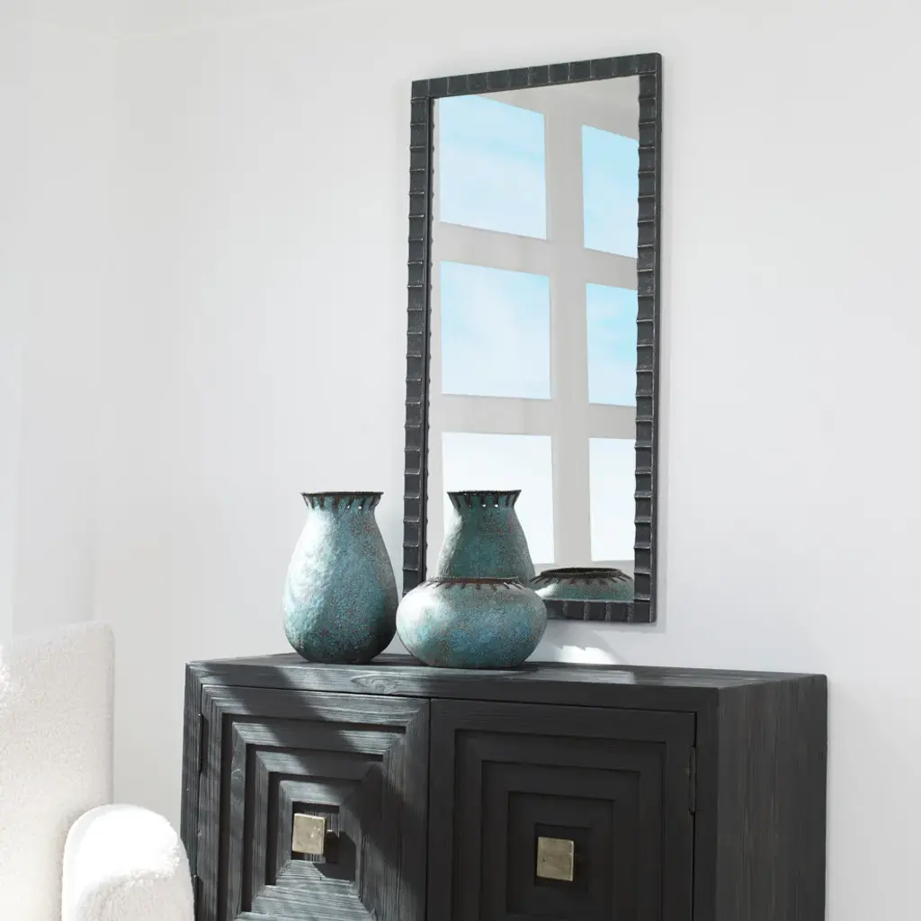 Constructed From Hand Forged Iron With Noticeable Raised Ridges For A Touch Of Industrial Influence, Finished In A Slightly Distressed Matte Black With Silver Undertones. May Be Hung Horizontal Or Vertical.
