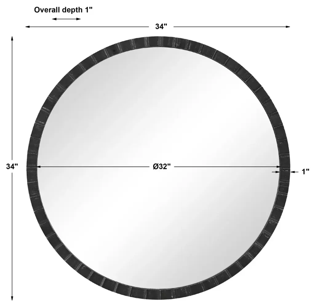 Constructed From Hand Forged Iron With Noticeable Raised Ridges For A Touch Of Industrial Influence, Finished In A Slightly Distressed Matte Black With Silver Undertones. Uttermost''s Mirrors Combine Premium Quality Materials With Unique High-style Design. With The Advanced Product Engineering And Packaging Reinforcement, Uttermost Maintains Some Of The Lowest Damage Rates In The Industry. Each Product Is Designed, Manufactured And Packaged With Shipping In Mind. DimensionsDepth: 1 in. Width: 34 in. Height: 34 in.