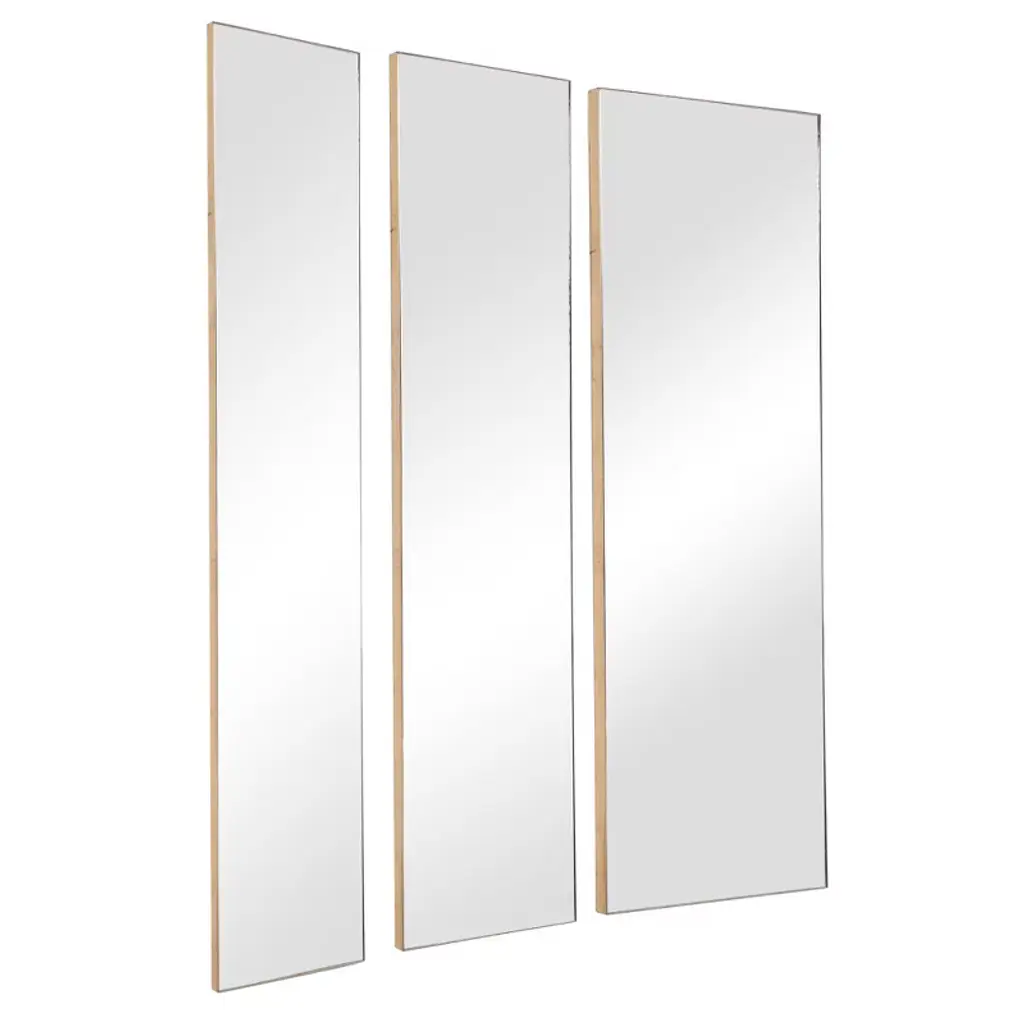 Uttermost Designer – Rowling Mirrors Set Of Three 47"x 6" Gold Glass Rectangular Wall Decor