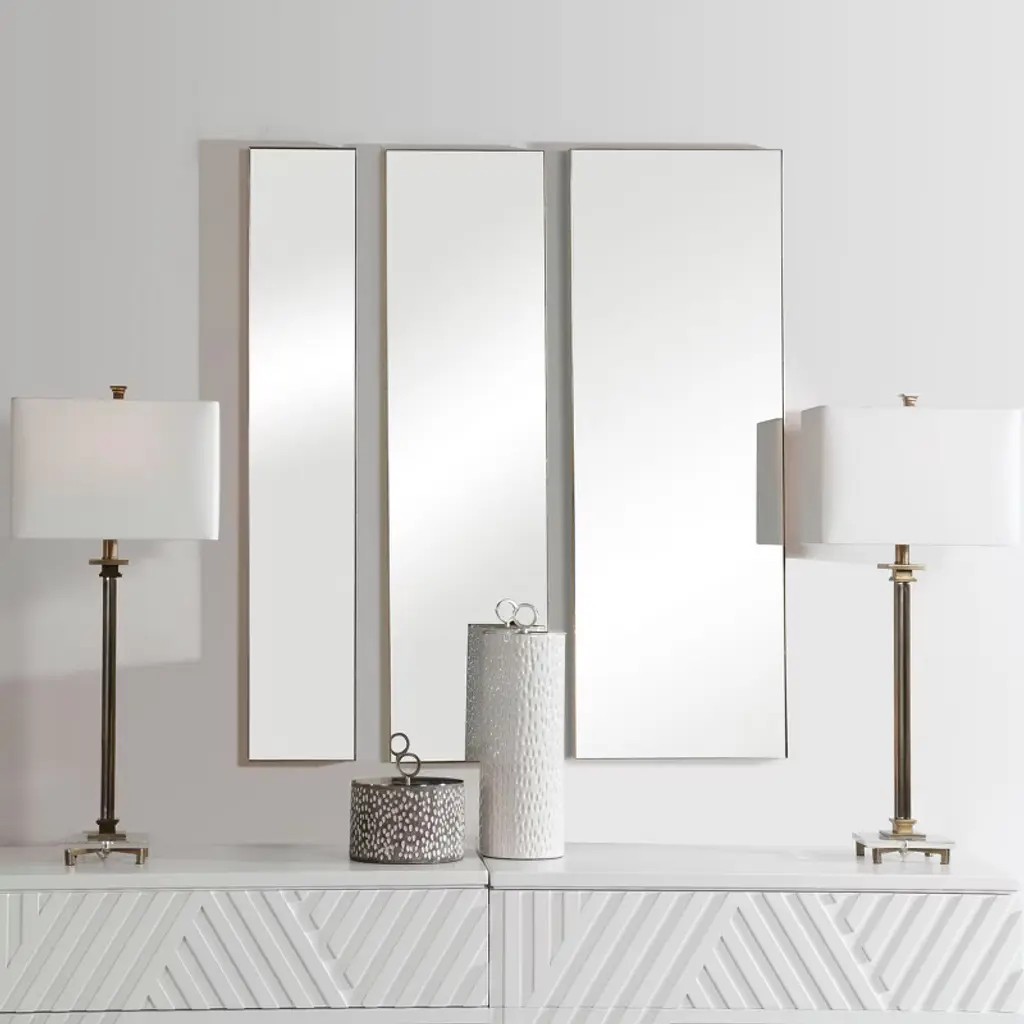 The Uttermost Rowling Gold Mirrors Set of 3 brings timeless elegance and versatility to your home. Featuring sleek gold frames and generous proportions, these mirrors add a touch of sophistication while reflecting light to make your interiors feel brighter and more open. Key Features: Luxurious gold frames add elegance and warmth to interiorsPremium glass mirrors ensure clarity and durabilityArrange together or separately for versatile decorating optionsBrighten rooms by reflecting natural and artificial lightCrafted by Uttermost, renowned for high-quality design