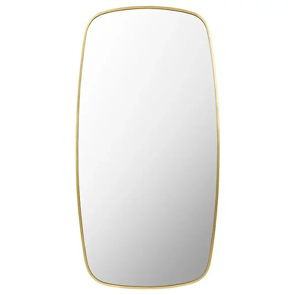 This Solid Wood Frame Features A Unique Shape With Delicate Curves, Hand Finished In A Lightly Antiqued Gold Leaf. Mirror Has A Generous 1 1/4" Bevel.