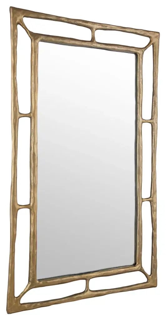 This Rectangle Mirror Is Crafted From Cast Aluminum, Showcasing Hand-forged Aesthetic With Its Subtle Asymmetrical Shape And Hammered Texture, Finished In A Plated Antiqued Brass. May Be Hung Horizontal Or Vertical.
