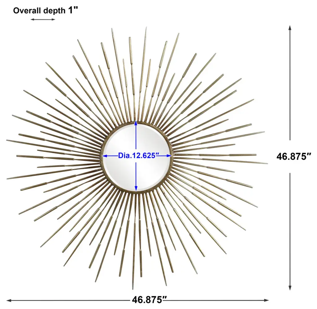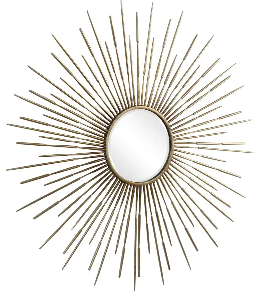 Inspired By Mid-century Designs, This Starburst Mirror Is Finished In An Antiqued Gold Leaf And Features A 1" Bevel.
