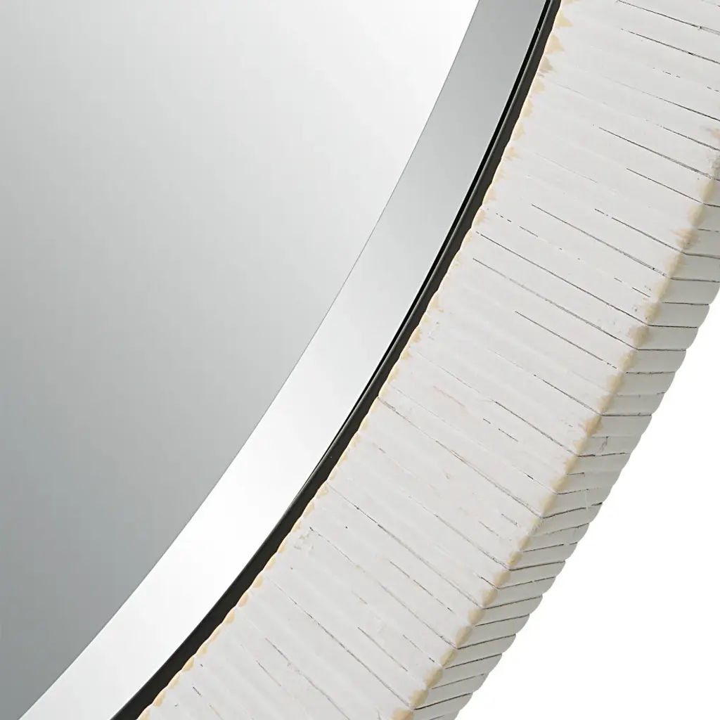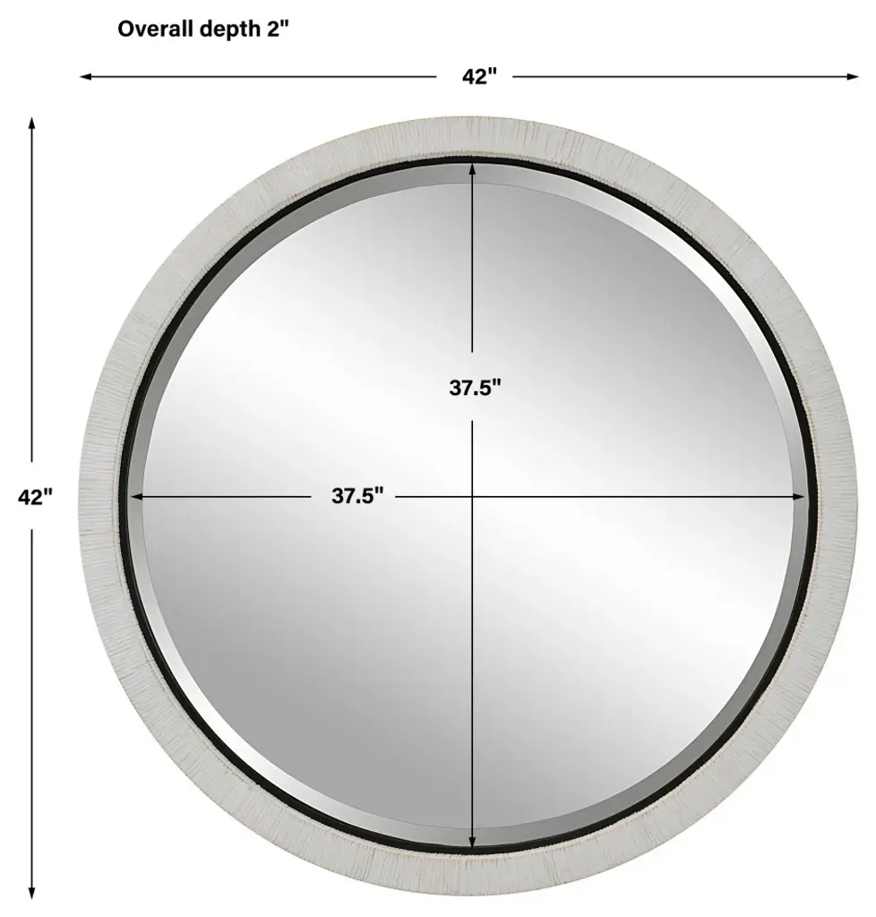 This Contemporary Round Showcases A Wrapped Rattan Frame In A Heavy Whitewash Finish With A Solid Iron Liner Finished In Matte Black. The Mirror Features A Generous 1 1/4" Bevel. Uttermost''s Mirrors Combine Premium Quality Materials With Unique High-style Design. With The Advanced Product Engineering And Packaging Reinforcement, Uttermost Maintains Some Of The Lowest Damage Rates In The Industry. Each Product Is Designed, Manufactured And Packaged With Shipping In Mind. DimensionsDepth: 2 in. Width: 42 in. Height: 42 in.
