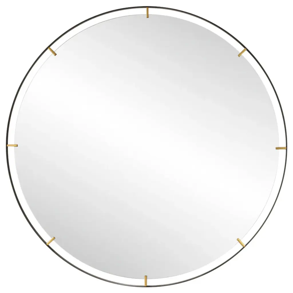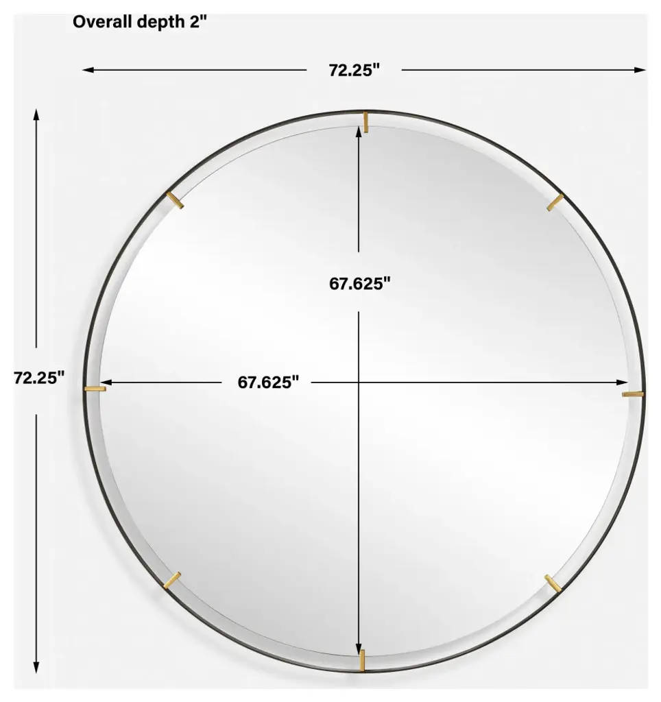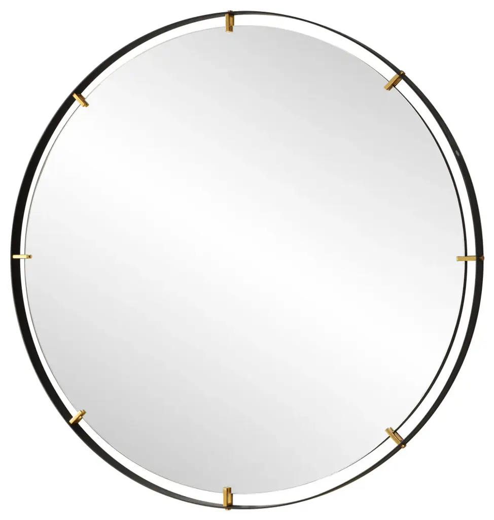 Elevate Your Home Decor With Our Grand Pendulum Round Mirror. Crafted With A Hefty Black Iron Frame Accented By Lightly Antiqued Gold Clips That Help Suspend A Polished Edge Mirror For A Statement Piece In Any Room.