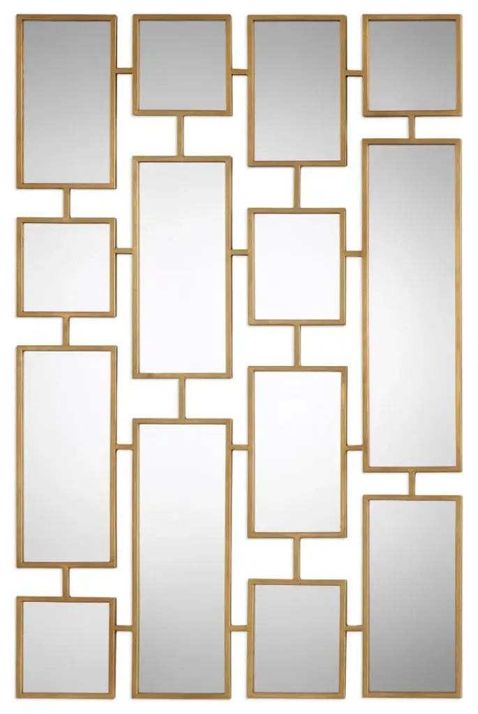 Craftily Connected Forged Iron Rectangles Finished In A Lightly Antiqued Gold Leaf. May Be Hung Horizontal Or Vertical. Uttermost''s Mirrors Combine Premium Quality Materials With Unique High-style Design. With The Advanced Product Engineering And Packaging Reinforcement, Uttermost Maintains Some Of The Lowest Damage Rates In The Industry. Each Product Is Designed, Manufactured And Packaged With Shipping In Mind. DimensionsDepth: 0. 5 in. Width: 32 in. Height: 48 in.