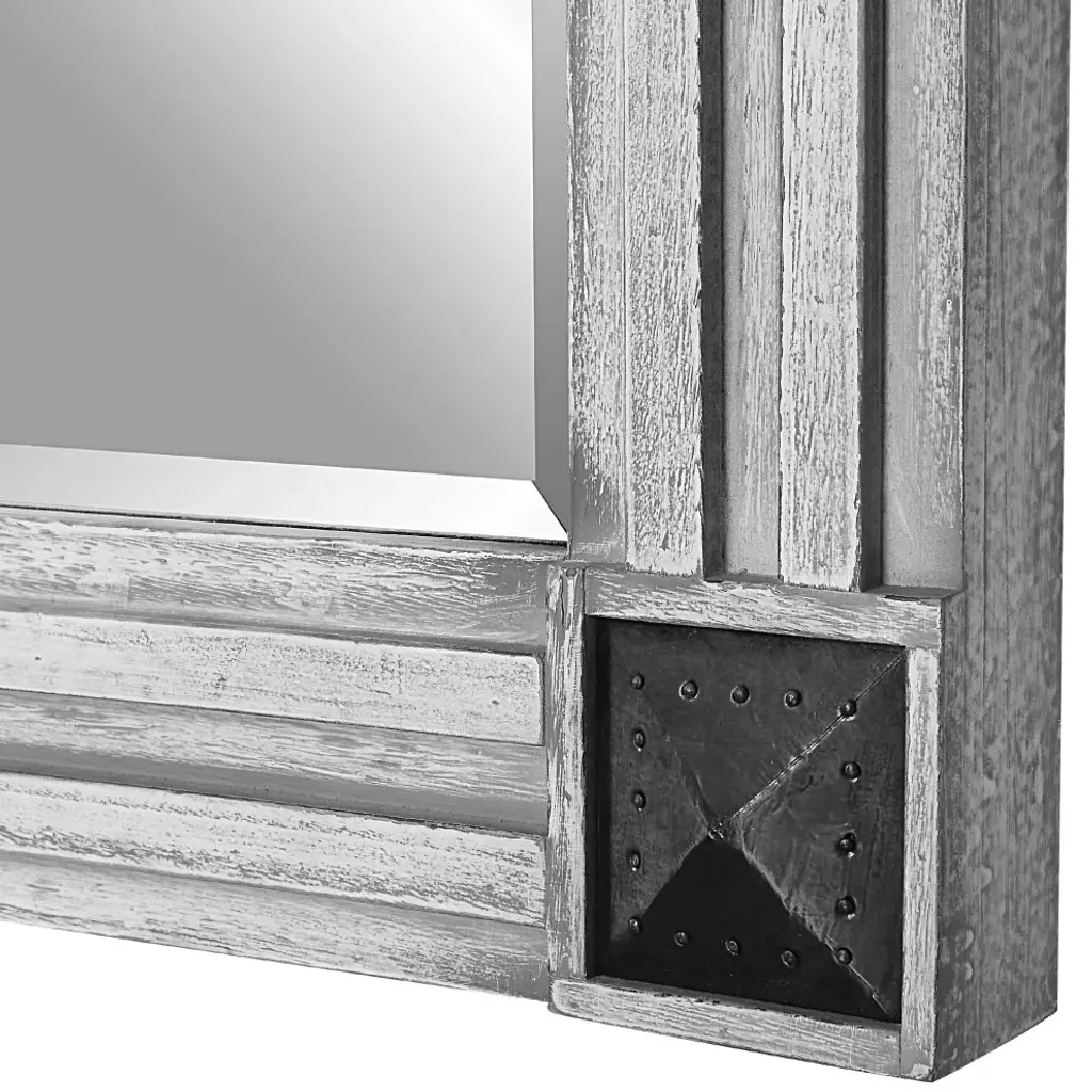 This Oversized Mirror Exudes A Stately Feel With Rustic Character. The Frame Is Crafted From Solid Fir Wood Finished In A Heavily Distressed White Wash With Gray Undertones. Aged Dark Bronze Accents With Nail Details Adorn Each Corner. Mirror Has A 1 1/4" Bevel And May Be Hung Horizontal Or Vertical. Uttermost''s Mirrors Combine Premium Quality Materials With Unique High-style Design. With The Advanced Product Engineering And Packaging Reinforcement, Uttermost Maintains Some Of The Lowest Damage Rates In The Industry. Each Product Is Designed, Manufactured And Packaged With Shipping In Mind. DimensionsDepth: 2. 375 in. Width: 34 in. Height: 72 in.