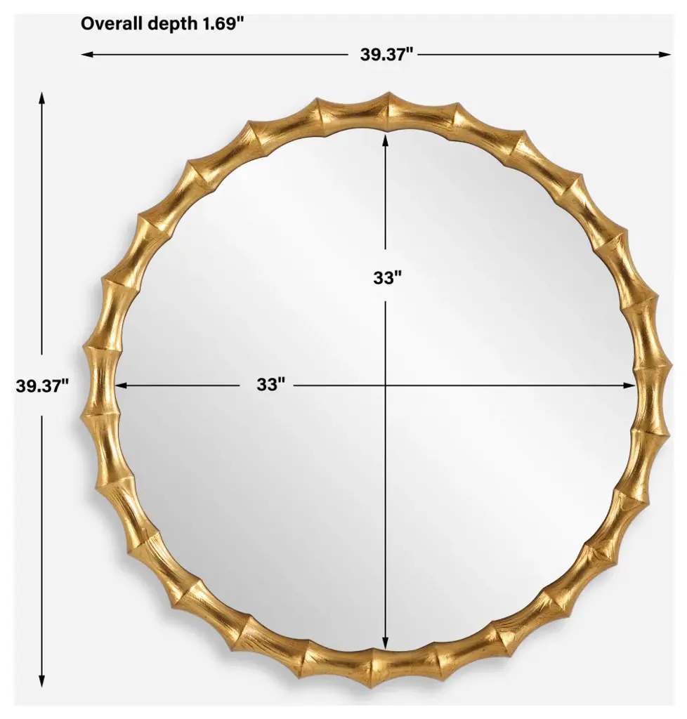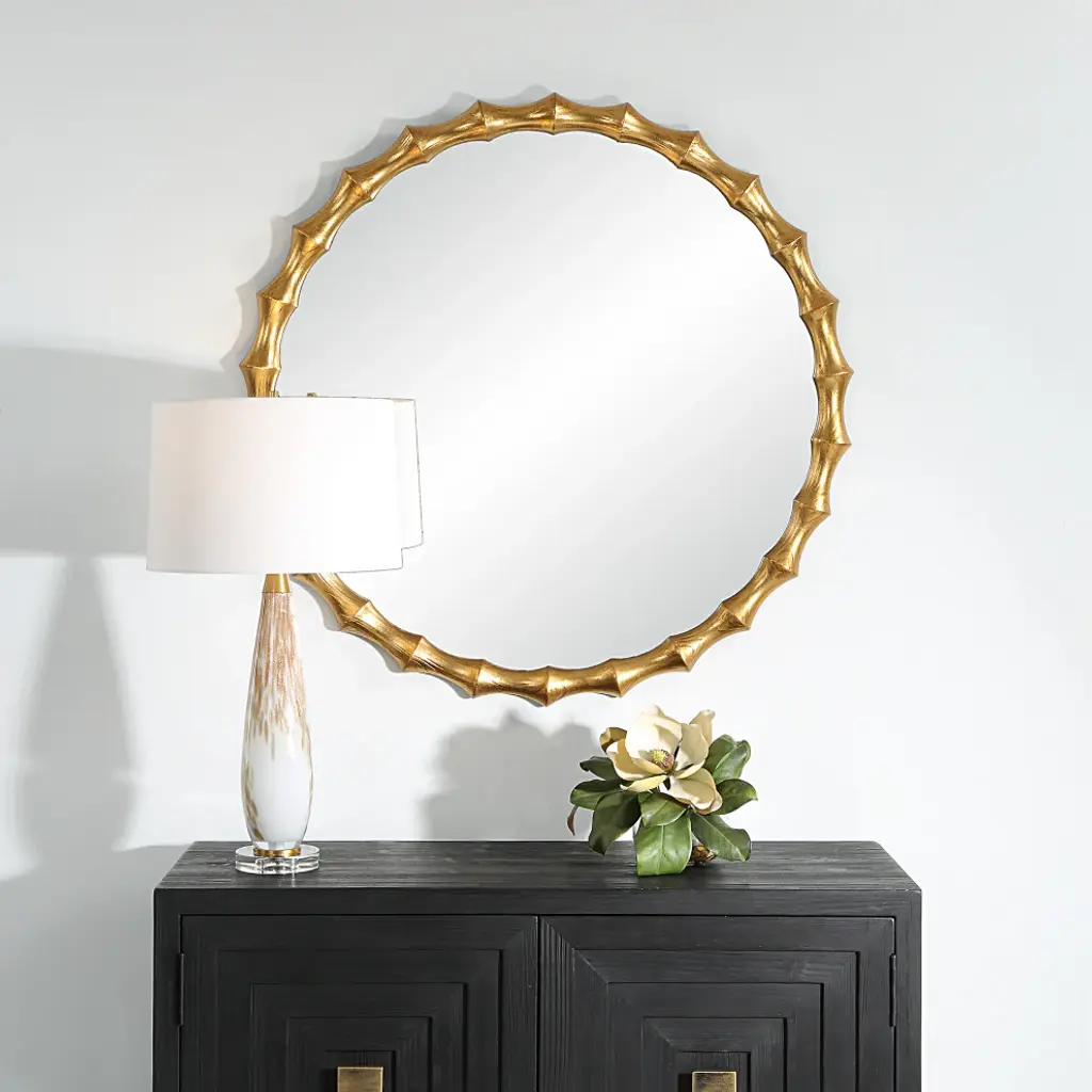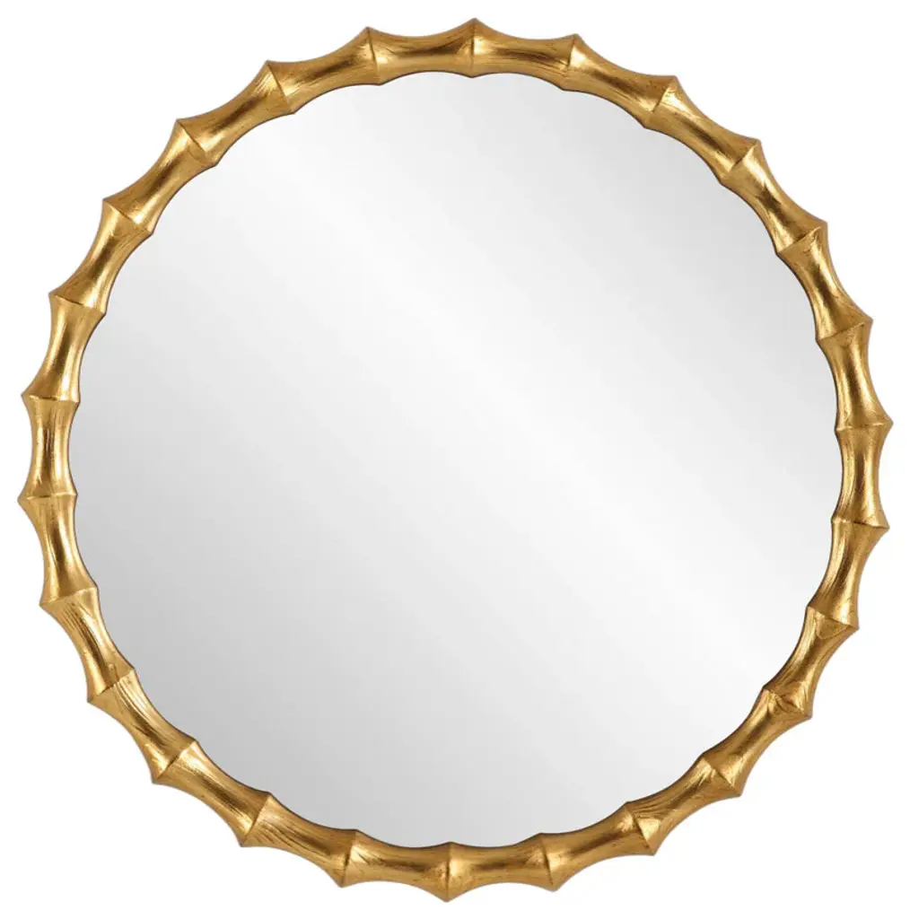 Inspired By The Organic Features Of Bamboo, The Nacala Round Mirror Features A Carved Pinewood Frame Finished In An Antiqued Gold Leaf With Exposed Wood Grain Detailing.