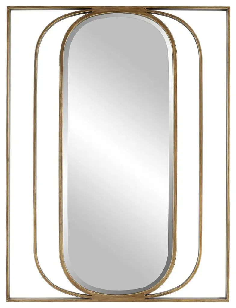 Contemporary Style Mirror Displays A Beveled Oval Interior With An Angular Metal Framework Finished In A Heavily Antiqued Gold. May Be Hung Horizontal Or Vertical. Uttermost''s Mirrors Combine Premium Quality Materials With Unique High-style Design. With The Advanced Product Engineering And Packaging Reinforcement, Uttermost Maintains Some Of The Lowest Damage Rates In The Industry. Each Product Is Designed, Manufactured And Packaged With Shipping In Mind. DimensionsDepth: 1. 25 in. Width: 30 in. Height: 40 in.