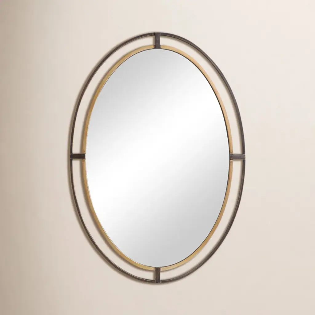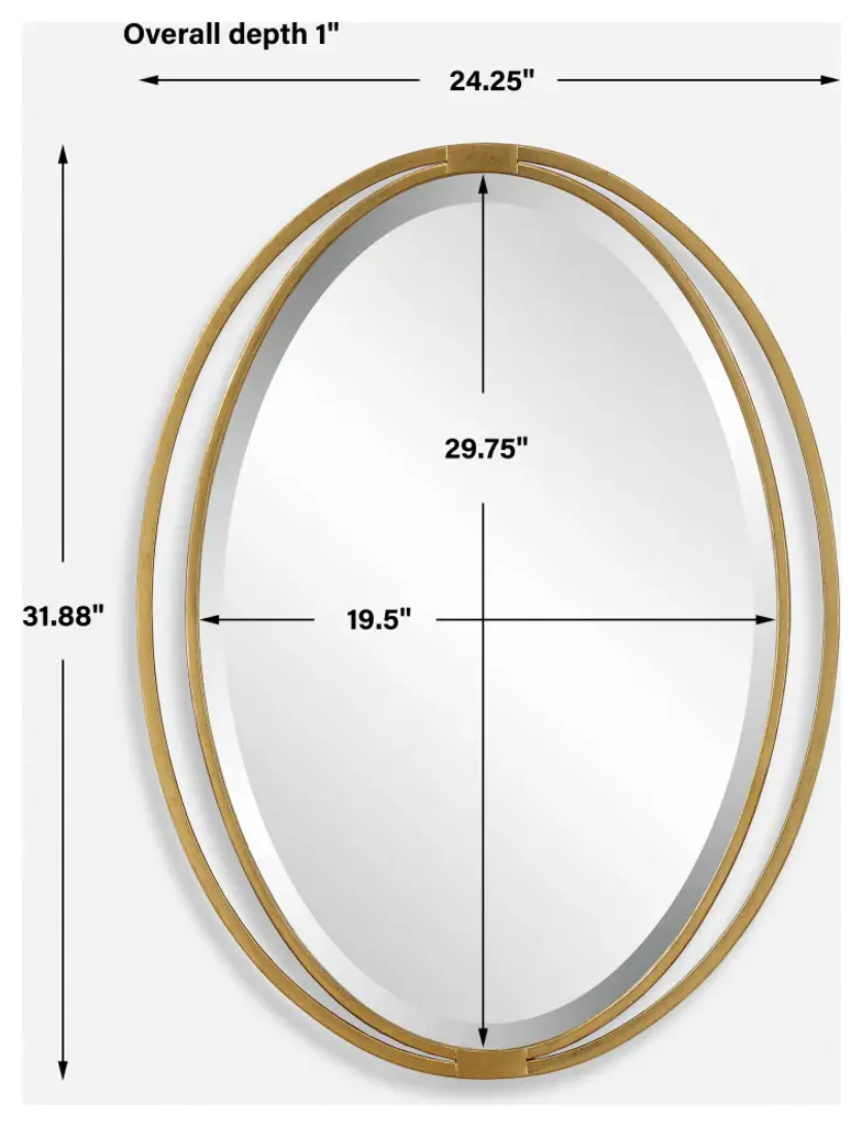The Rhodes Oval Mirror Features An Oval Outer Iron Frame Surrounding An Inner Oval, Finished In A Antiqued Metallic Gold Leaf, Adding Sophistication To Any Room.