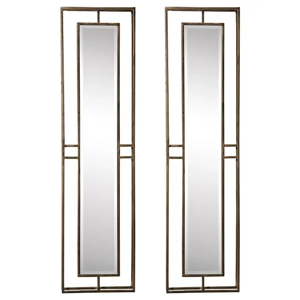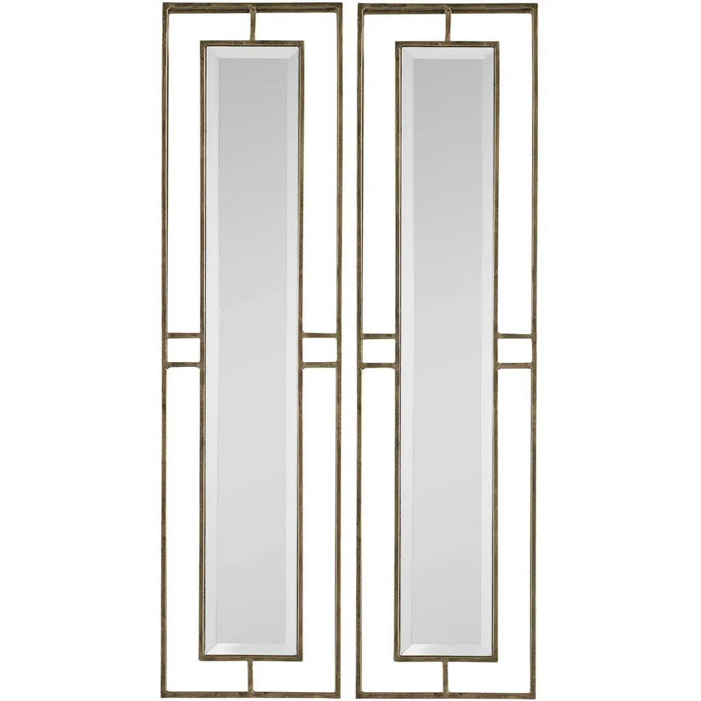 Clean And Contemporary, Each Mirror Exhibit Linear Metal Frames With A Nearly Two Inch Open Depth. Each Frame Is Finished In A Heavily Antiqued Gold, Accented By Slim Beveled Mirrors. May Be Hung Horizontal Or Vertical. Uttermost''s Mirrors Combine Premium Quality Materials With Unique High-style Design. With The Advanced Product Engineering And Packaging Reinforcement, Uttermost Maintains Some Of The Lowest Damage Rates In The Industry. Each Product Is Designed, Manufactured And Packaged With Shipping In Mind. DimensionsDepth: 1. 75 in. Width: 7. 75 in. Height: 30 in.