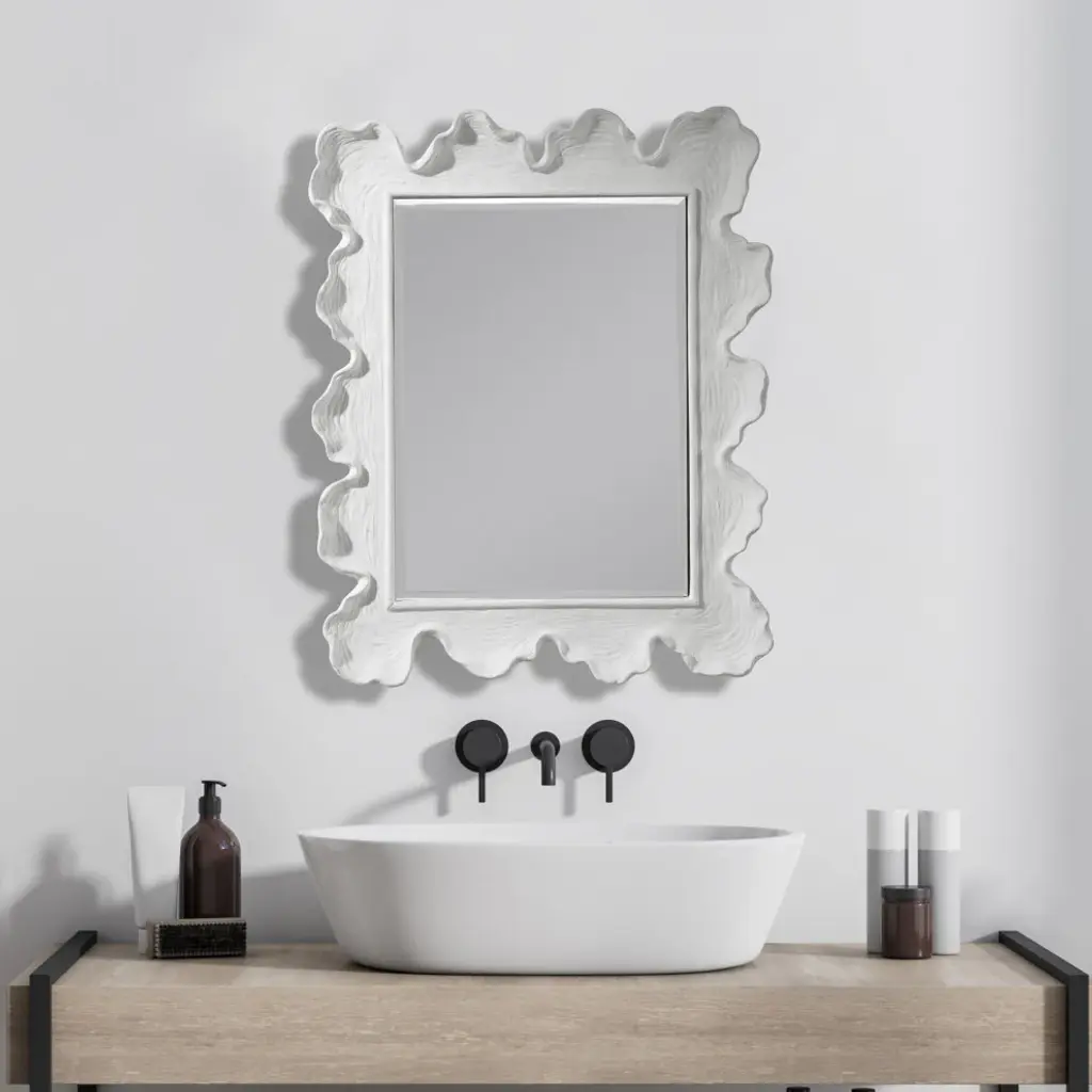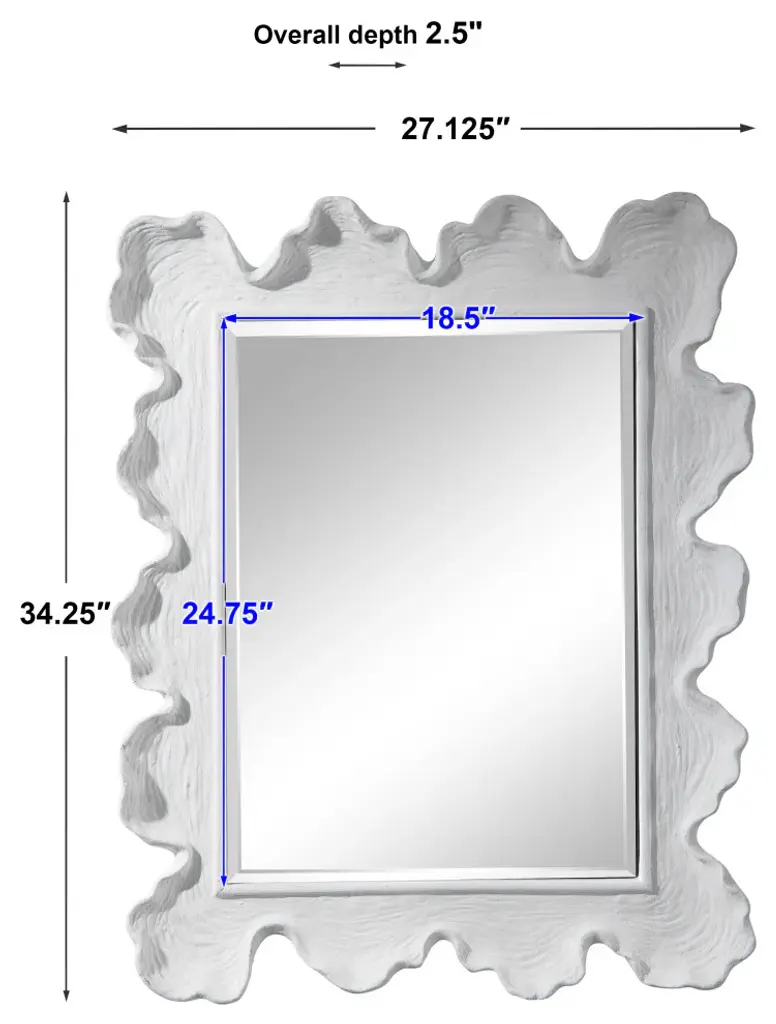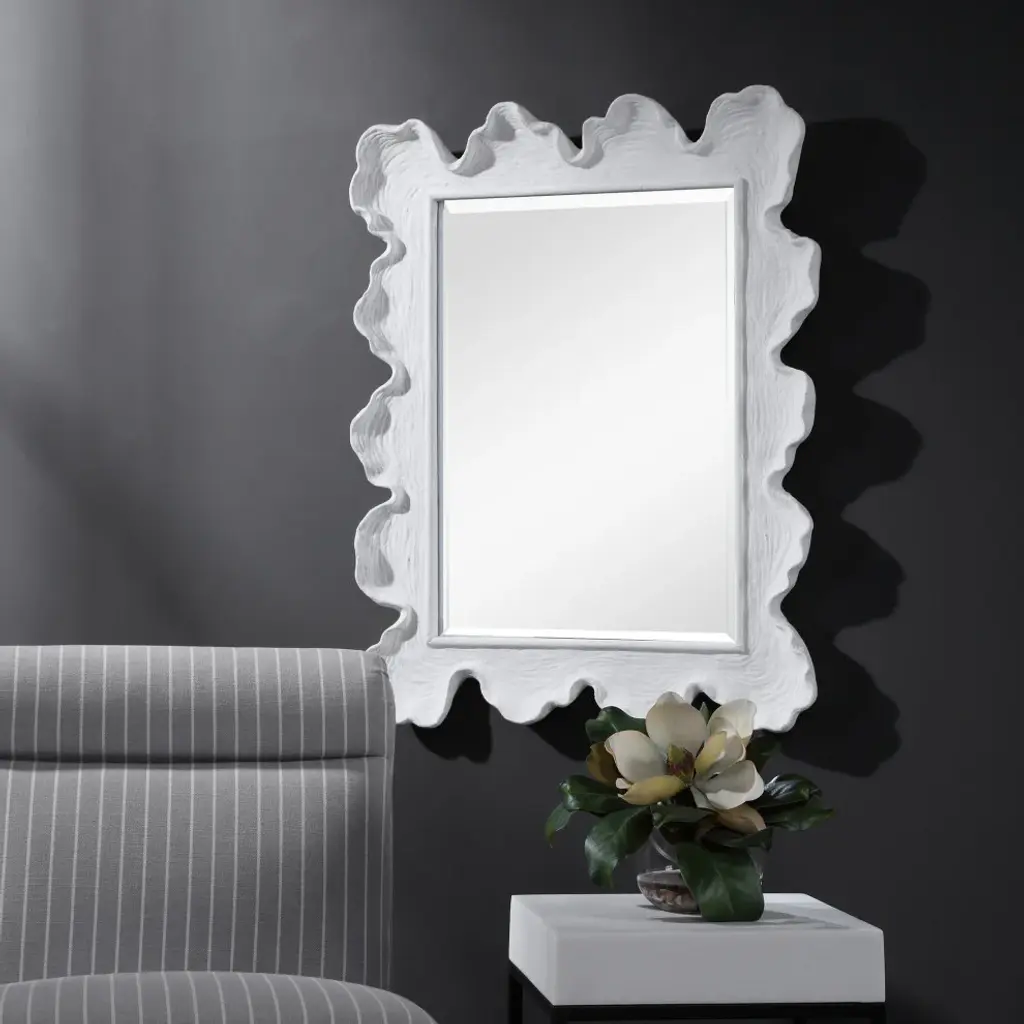 Reminiscent Of White Coral, This Mirror Showcases A Contemporary Coastal Design. The Organic Shaped Frame Is Finished In Matte White With Noticeable Waves And Texture. May Be Hung Horizontal Or Vertical.