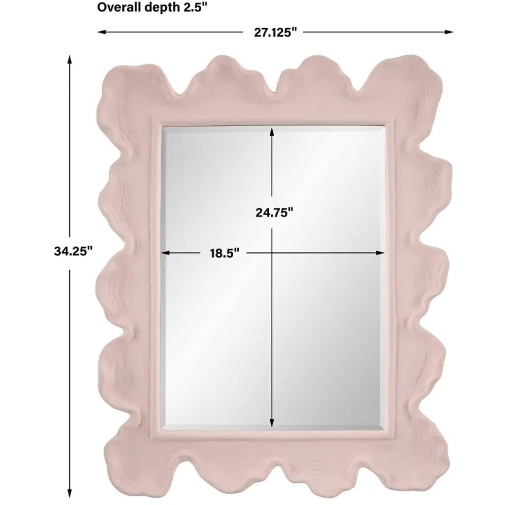 The Uttermost 09955 Sea Coral Pink Mirror is a vibrant and unique piece that brings a touch of coastal or tropical charm to any space. The mirror features a frame designed to resemble coral, with a soft, pink hue that adds a pop of color and an organic, natural feel. The coral-inspired design gives it a playful yet elegant aesthetic, making it ideal for spaces that aim to evoke a fresh, beachy vibe. This mirror is perfect for coastal-themed interiors, bathrooms, or bedrooms, where its warm, soft color and sculptural frame can stand out as a focal point. Its combination of artistic design and natural texture makes it both a functional mirror and a decorative piece that adds character to the room.