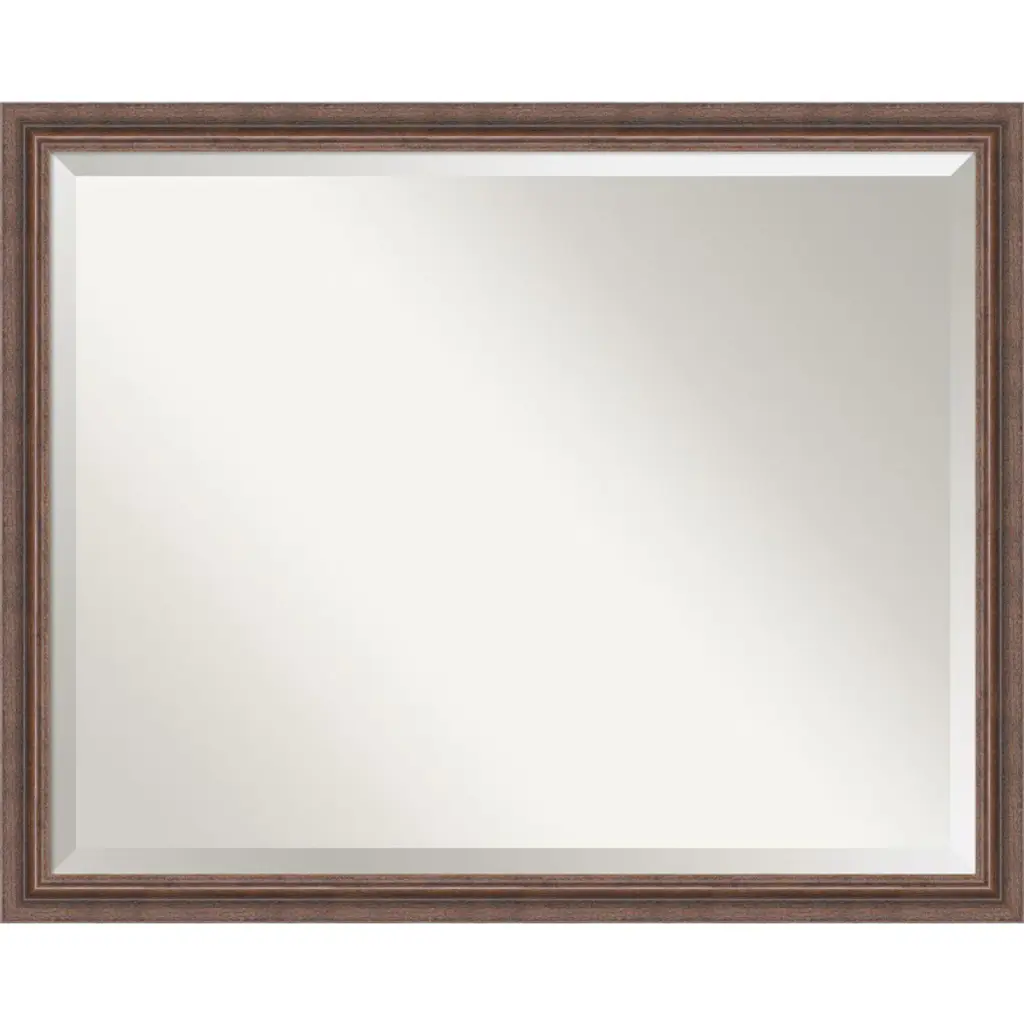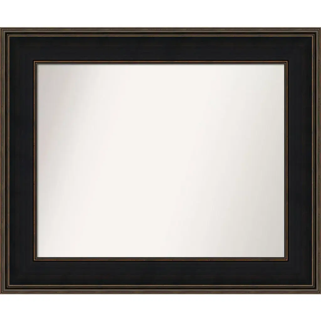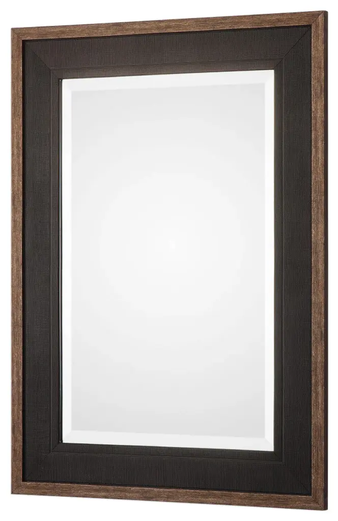 This Solid Pine Frame Has A Mesh Texture Surface Finished In A Rustic Black, Accented With A Distressed Aged Bronze Outer Edge. Mirror Features A Generous 1 1/4" Bevel. May Be Hung Horizontal Or Vertical.