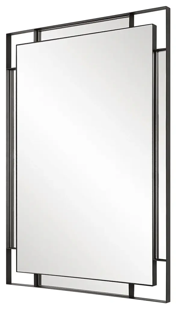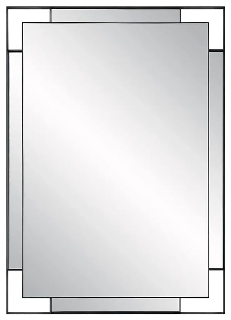 The Stellan Mirror Features A Strap Style Frame Finished In A Sleek Matte Black Surrounding A Floating Polished Edge Mirror With Accompanying Side Mirrors For Added Visual Dimension. May Be Hung Vertical And Horizontal.