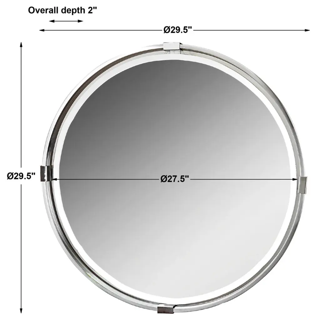 Refined Metal Frame Finished In A Plated Brushed Nickel, Displaying Layers Of Depth Surrounding A Floating Bevel Mirror With A Generous 1 1/4" Bevel. Uttermost''s Mirrors Combine Premium Quality Materials With Unique High-style Design. With The Advanced Product Engineering And Packaging Reinforcement, Uttermost Maintains Some Of The Lowest Damage Rates In The Industry. Each Product Is Designed, Manufactured And Packaged With Shipping In Mind. DimensionsDepth: 2 in. Width: 29. 5 in. Height: 29. 5 in.