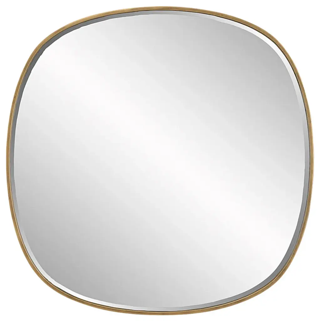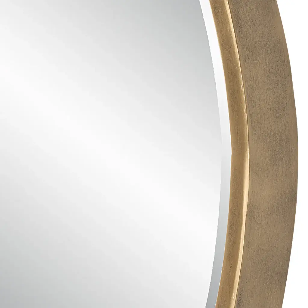 This Shapely Mirror Features An Iron Frame Finished In A Heavily Antiqued Gold For An Updated Appeal To The Traditional Round. Mirror Has A Generous 1.25" Bevel.