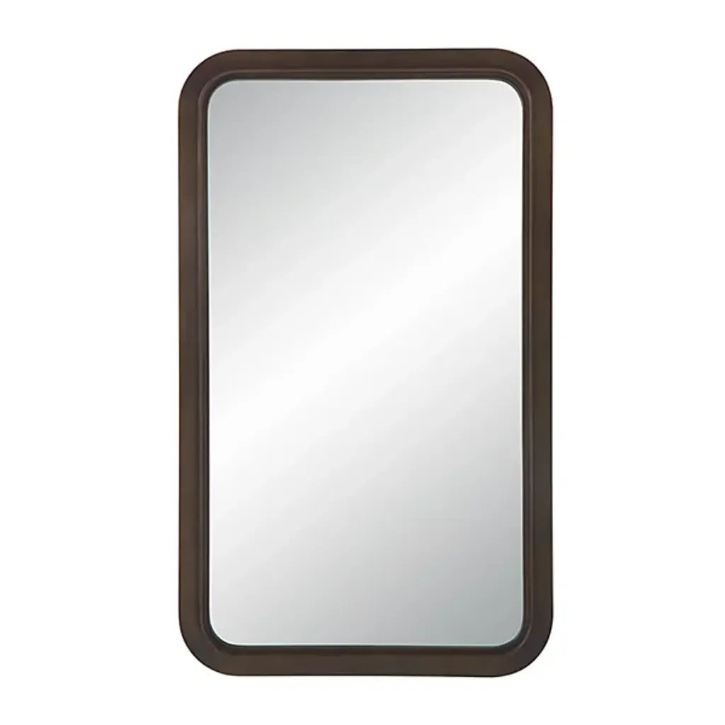 A fine charcoal gray metallic edge frames this rectangular wall mirror.