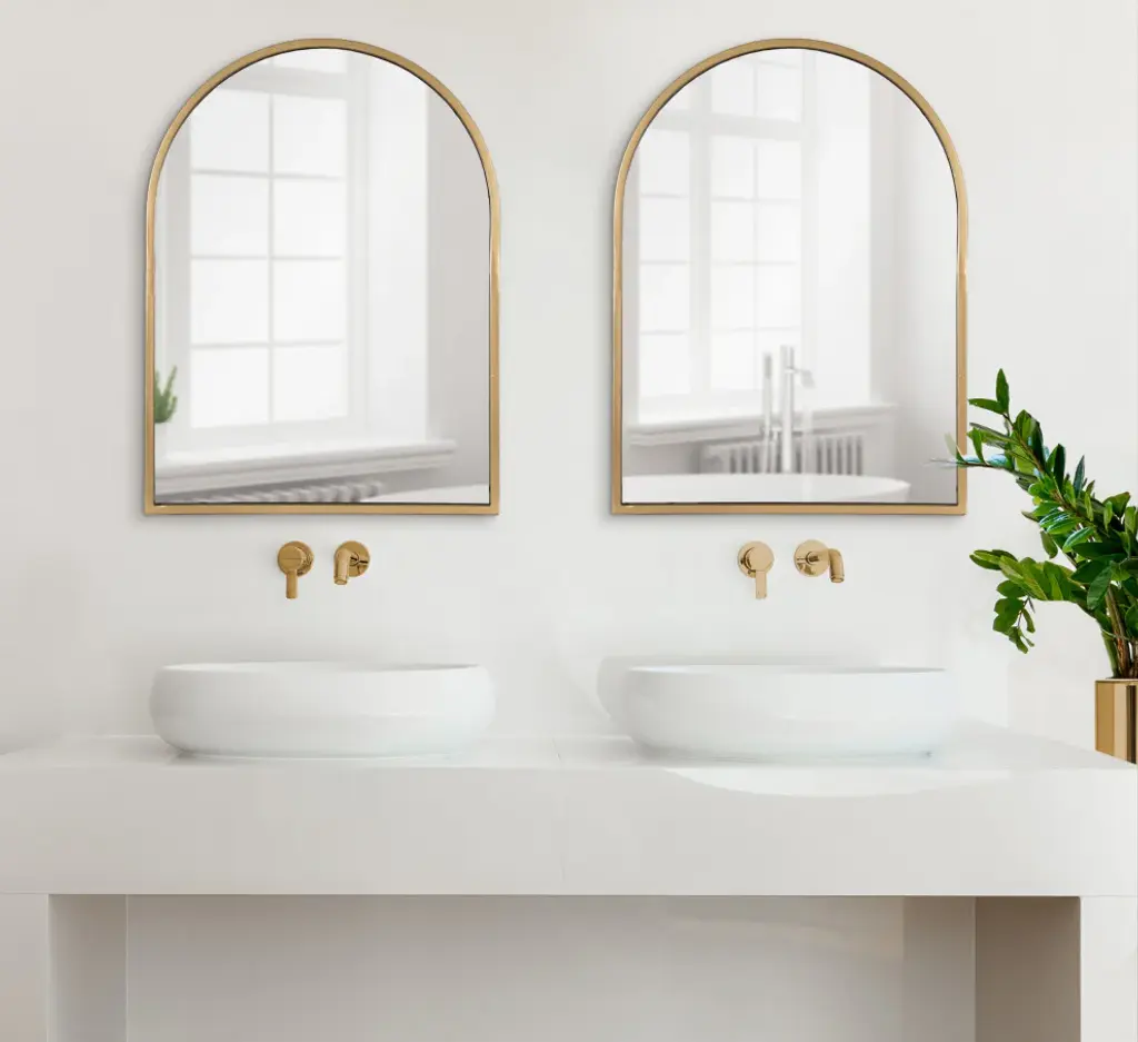 The striking elegance and simple design of the Valenti Framed Arch Mirror make it easy to brighten and open up a room with light and reflection. Hang it vertically for a sleek, modern look or place two or more together side by side for an interesting wall accent over a console or sofa• The inset arched mirror sets securely within a slim metal frame adding a crisp, modern look to any room. The overall dimensions are 32 inches high x 24 inches wide• This decorative mirror will work well hung on any wall in your home. Place two or more together side by side for a dramatic effect in an entryway, bathroom or even at the end of a hallway• The sturdy, metal frame surrounds the arched mirror glass creating a significant effect. It''s built to last and offers a beautiful, eclectic style• Sawtooth hangers are secured on the back so it can be installed on your wall with ease• Upgrade the look of your walls with this unique arch mirror - it''s the perfect size to add a touch of class to your home decor