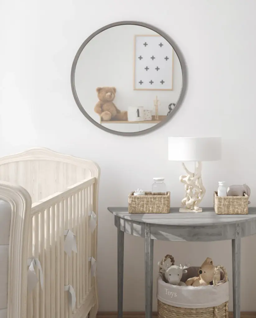 Valenti Round Framed Mirror, Gray 18 Diameter
