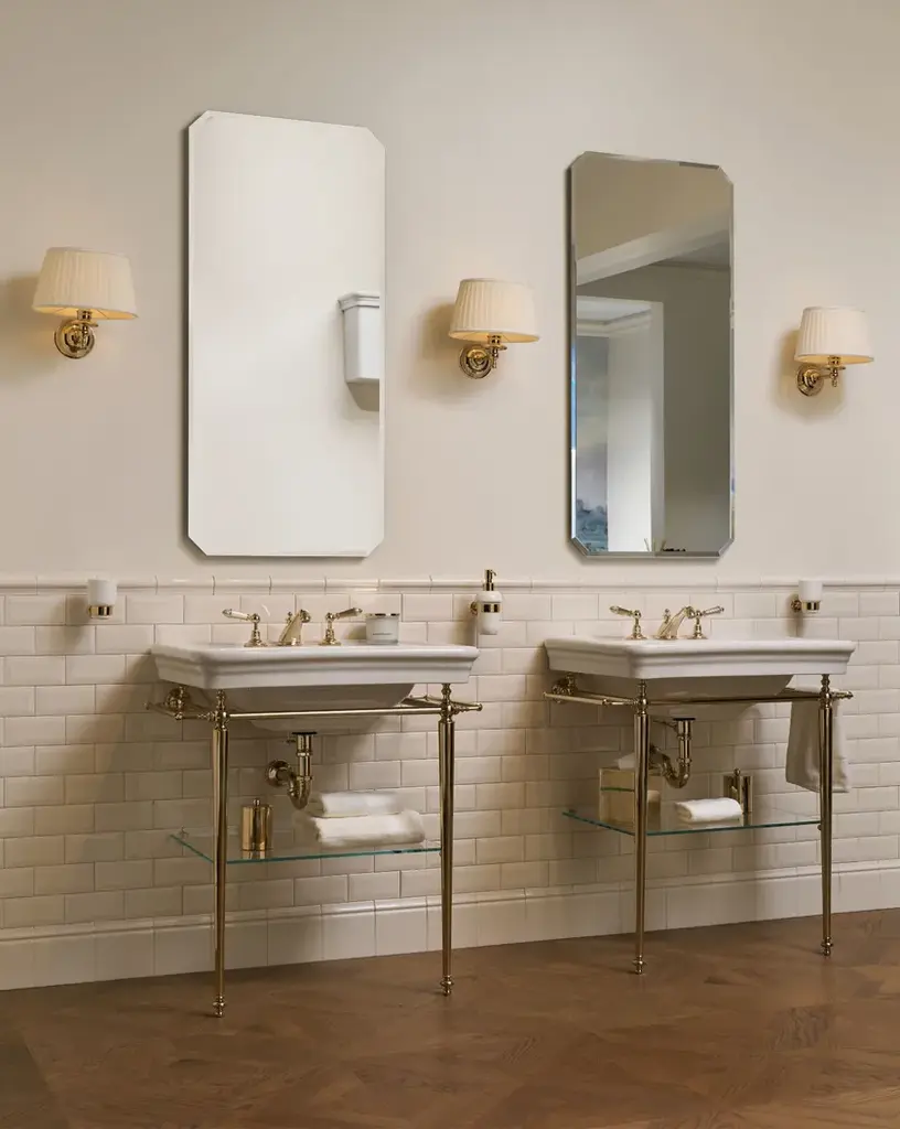 Its elongated and octagonal design with polished edge takes inspiration from old-fashioned silver snuff boxes and the precious stones of exquisite rings. The gorgeous, versatile Vanity mirror can be wall-mounted horizontally or vertically and also works wonderfully as a head-to-toe mirror solution.