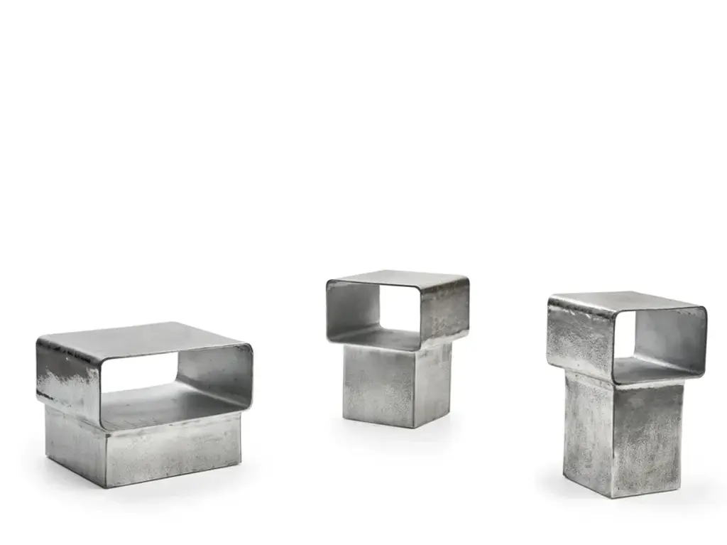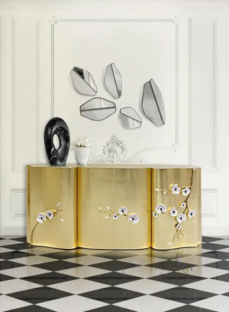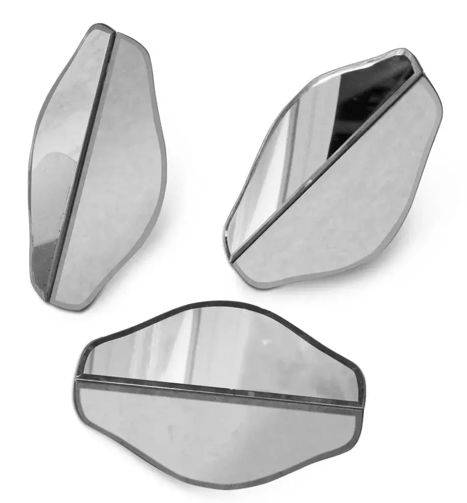 Set of 5 vanity foldable wall mirrors by memoir essence dimensions: d 18 x w 150 x h 110 cm. Large: d 18 x w 46 x h 75 cm. Small: d 12 x w 35 x h 50 cm. Materials: polished stainless steel and clear and aged mirror. vanity mirror it’s a collection that goes through 5 different leaf-shaped mirrors. Combined in different sizes and mirror types, these mirrors can make your creativity to create wall “patterns” or atmospheres, very different, dynamic and unique. Also available in aged bronze, gris mirror or clear mirror.