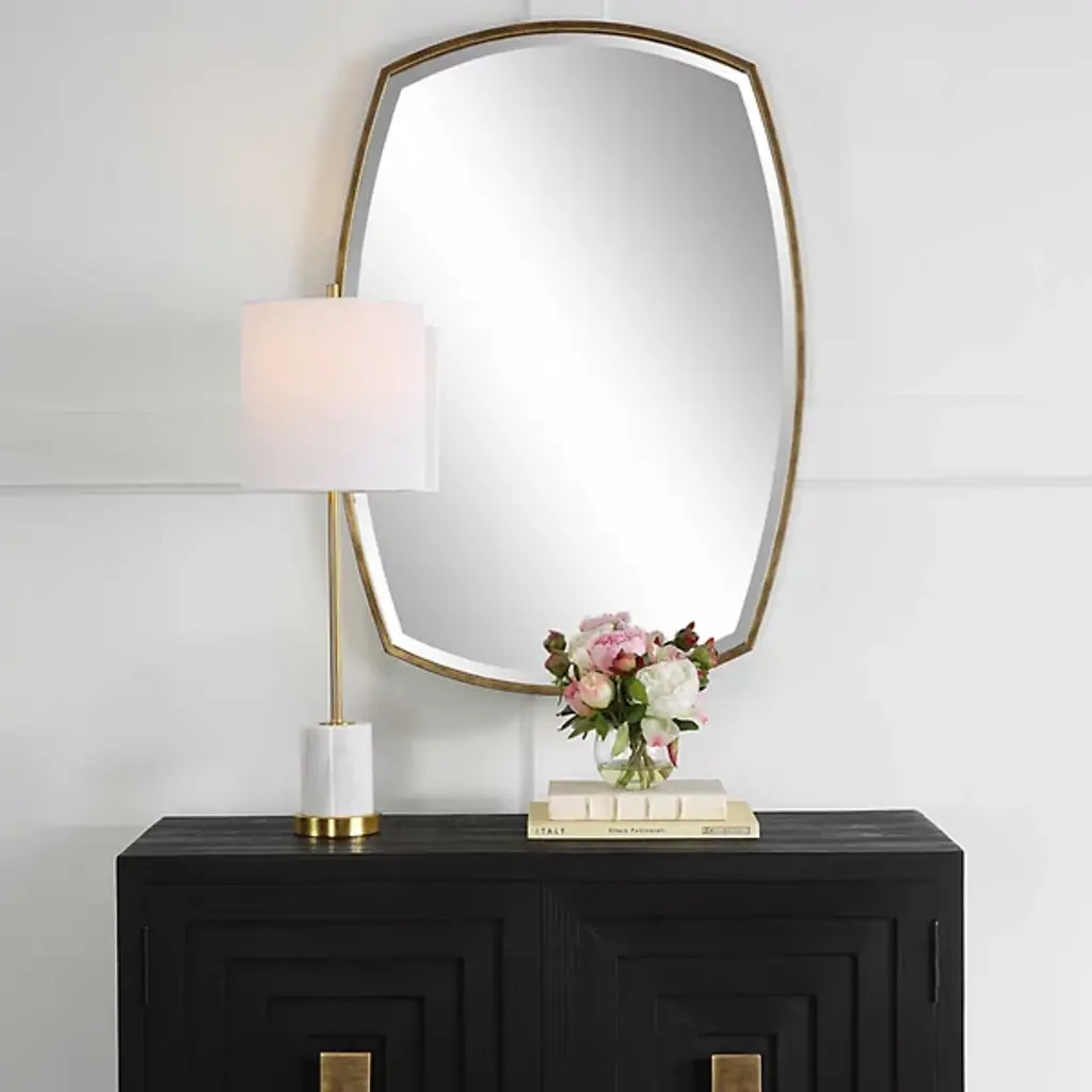 The Tazlina Mirror from Uttermost shines through designer Carolyn Kinder's fresh approach to metal manipulation. The frame appears to float away from the wall, creating an illusion of weightlessness with its brushed metal surface catching and reflecting ambient light. The multiple tiers of metalwork add visual intrigue while maintaining clean lines. This piece excels in modern interiors where its refined presence can stand alone, yet it's equally at home in transitional spaces. The beveled glass multiplies the reflective qualities, making rooms appear larger while adding a sense of movement to static walls.