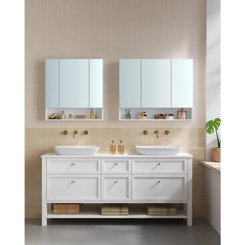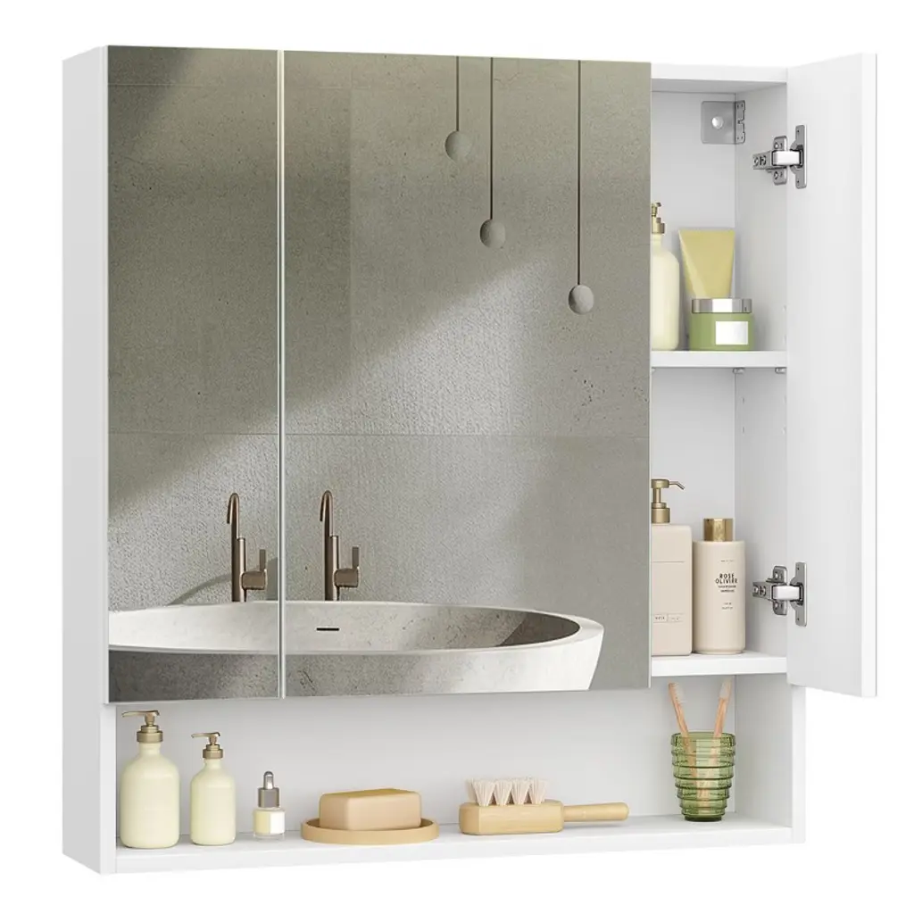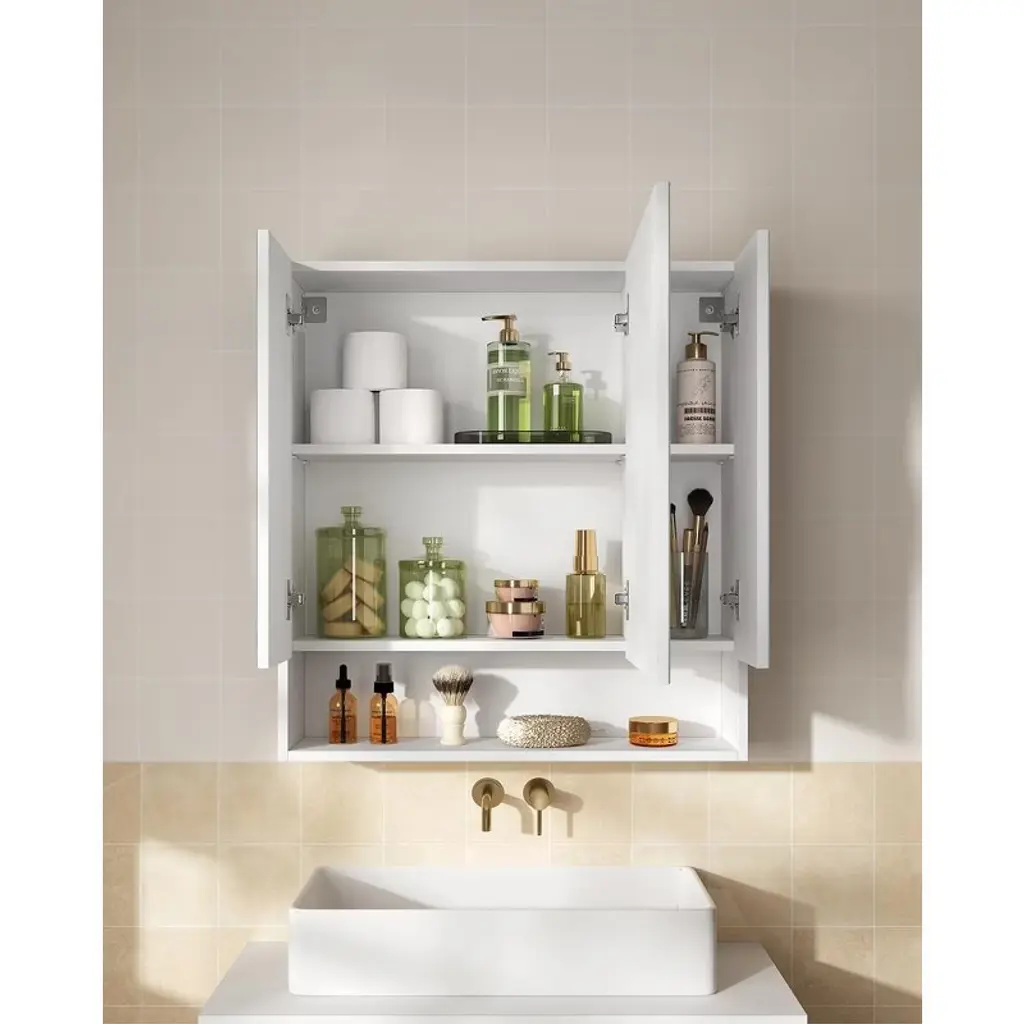 Elevate your bathroom with the KAILYN Collection¡ªa sleek, handleless wall cabinet that combines modern minimalism with smart functionality. The bright white finish and smooth surfaces create a clean, contemporary look, while the adjustable shelves inside offer customizable storage for toiletries, towels, and more. Three full-length mirrored doors provide a wide, distortion-free reflection, perfect for grooming and enhancing natural light. Designed with clean lines and a space-saving wall-mounted build, it effortlessly blends into any decor style. Plus, hassle-free assembly with pre-labeled parts ensures quick setup¡ªso you can enjoy a clutter-free, stylish bathroom in no time!