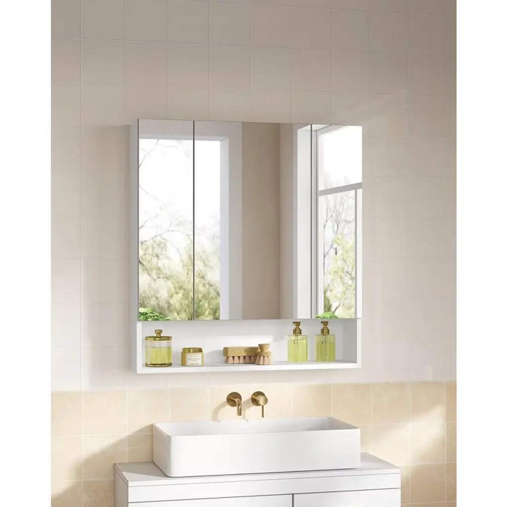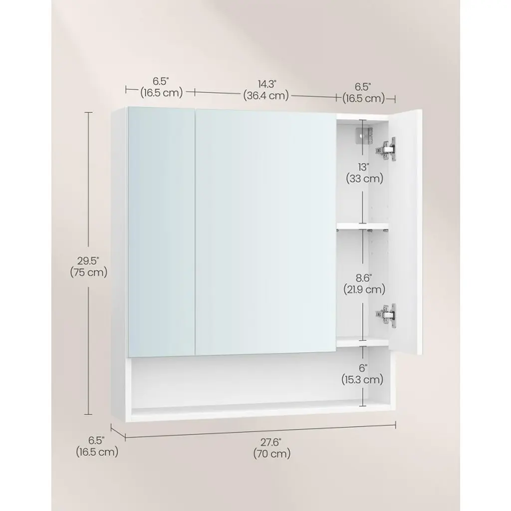 Vasagle Medicine Cabinet Mirror, Bathroom Mirror With Storage, Bathroom Mirror Cabinet, Wall Mirror Cabinet, Open Compartment, Cloud White